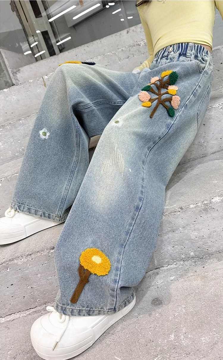 Youkaman Girls 'Jeants 봄과 가을 2025 새로운 어린이 서양식 봄 느슨한 바지 넓은 다리 바지스토어 가기