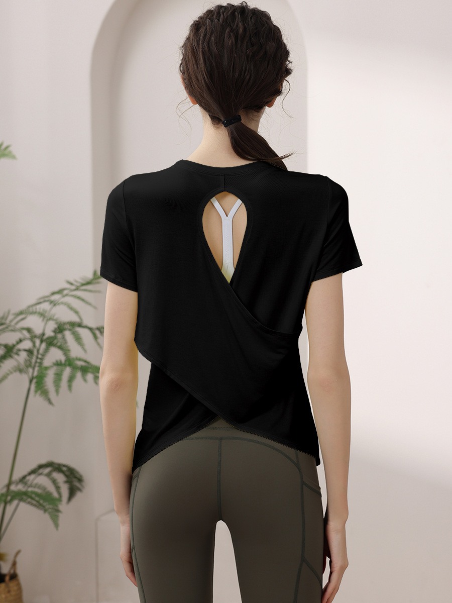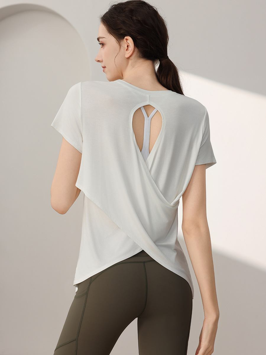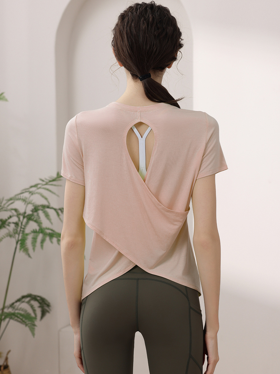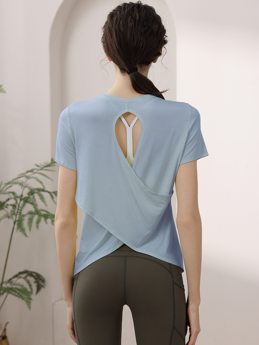 모달 아름다운 백 스포츠 탑 짧은 소매 여성 달리기 훈련 필라테스 피트니스 섹시한 블라우스 요가 티셔츠 여름