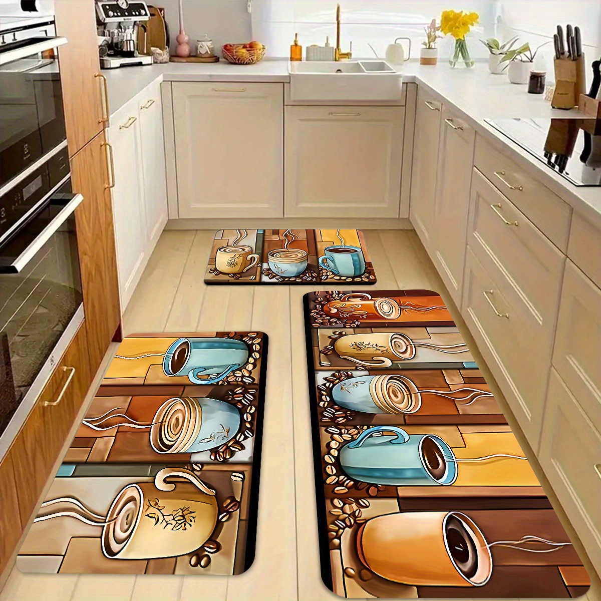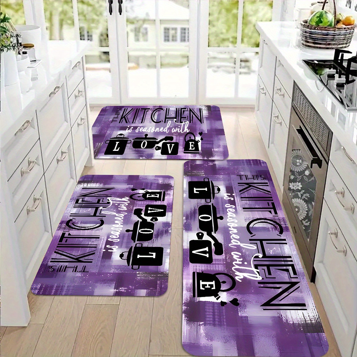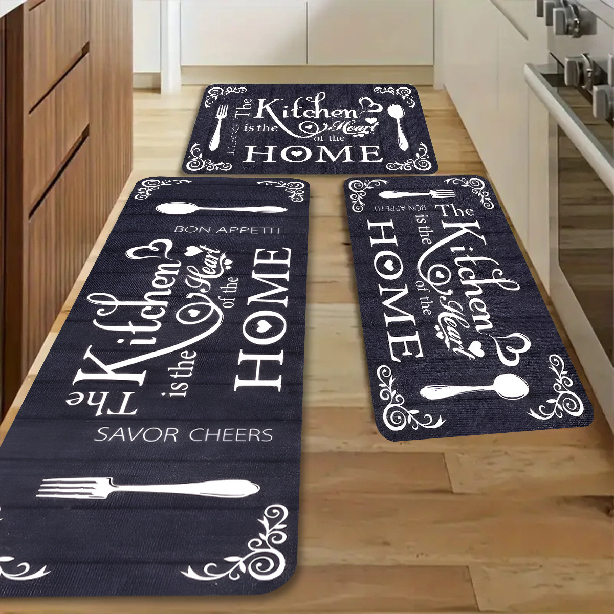 국경 간 TEMU 뜨거운 판매 크리스탈 벨벳 주방 조합 3 종 세트 미끄럼 방지 더러운 입구 문 매트 재고스토어 가기