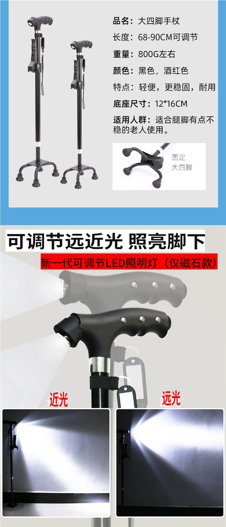 • 검정색 자동 알람 모델 회전 소형 4족 단일 다리 대형 4족 3용 + 팔걸이 + 조명