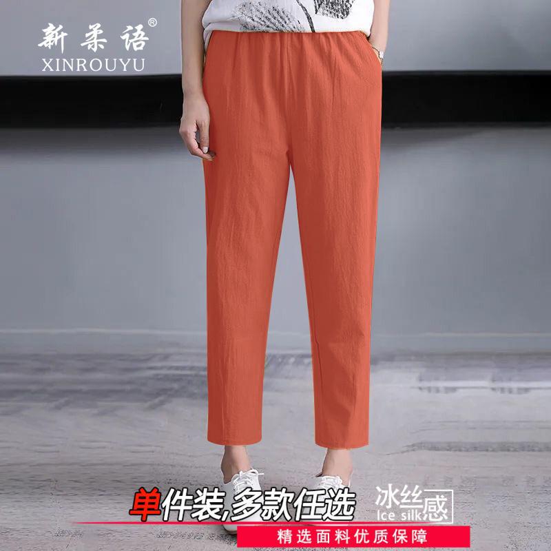 여름 2025 새로운 높은 허리 느슨한 투약 아이스 실크 넓은 다리 바지 여성용 스트레이트 바지 얇은 자른 캐주얼 세트 바지