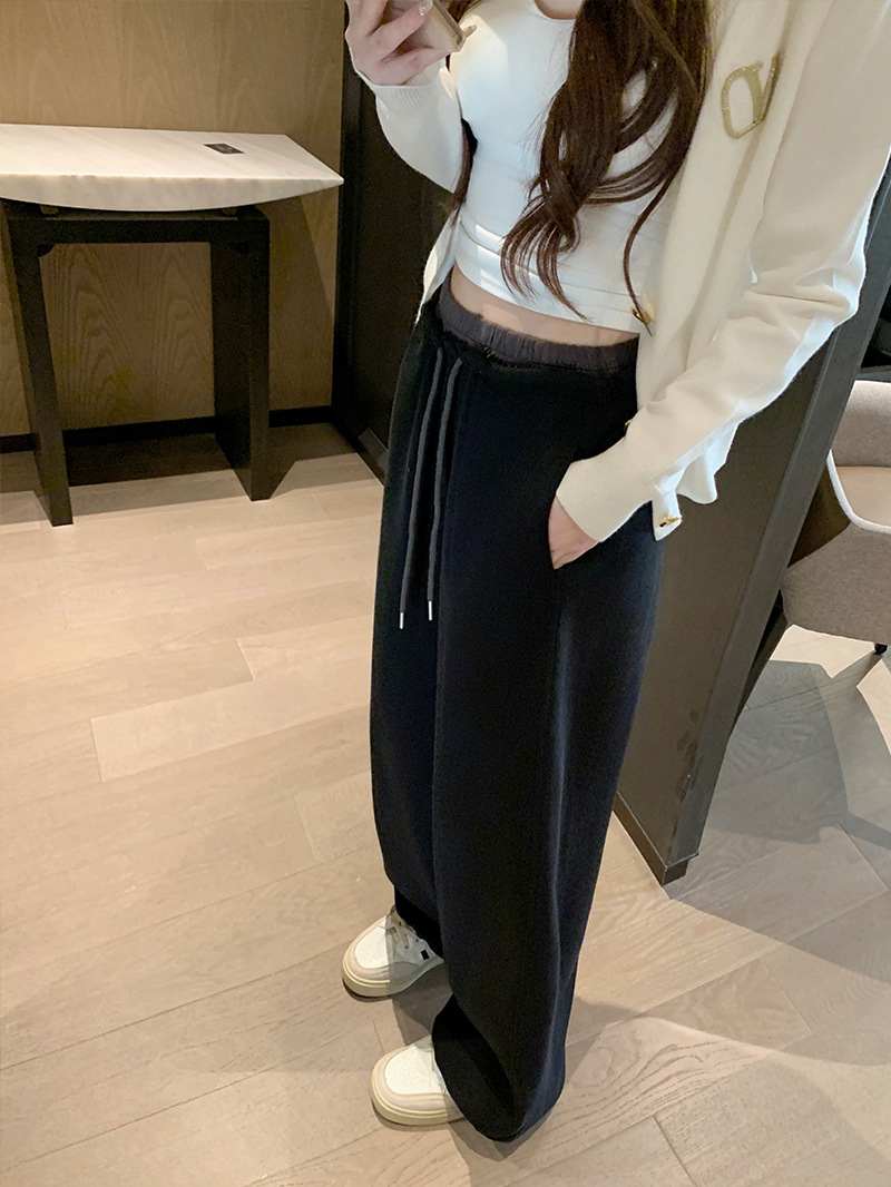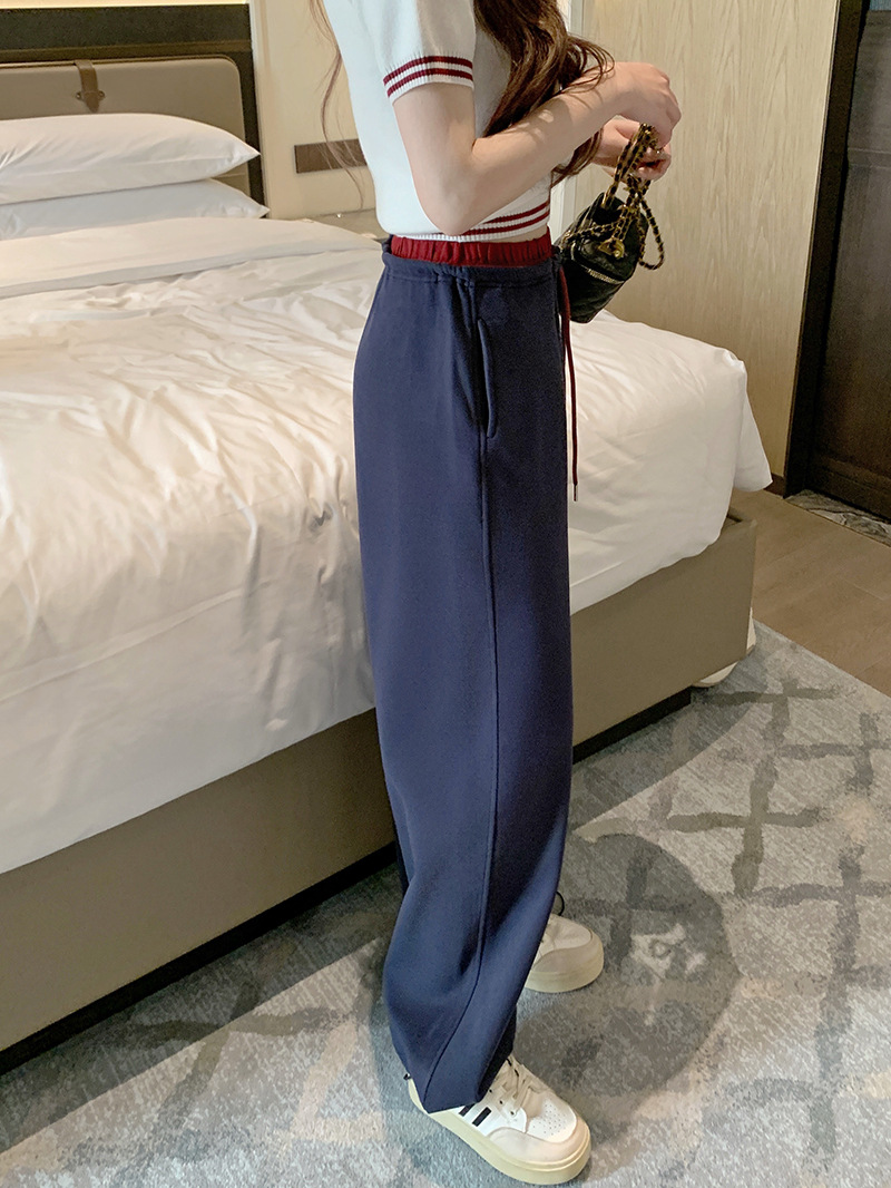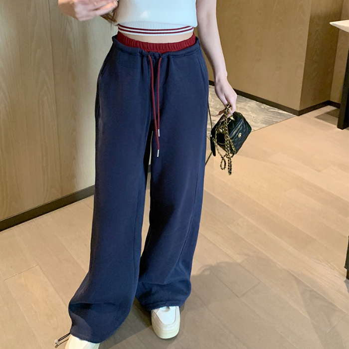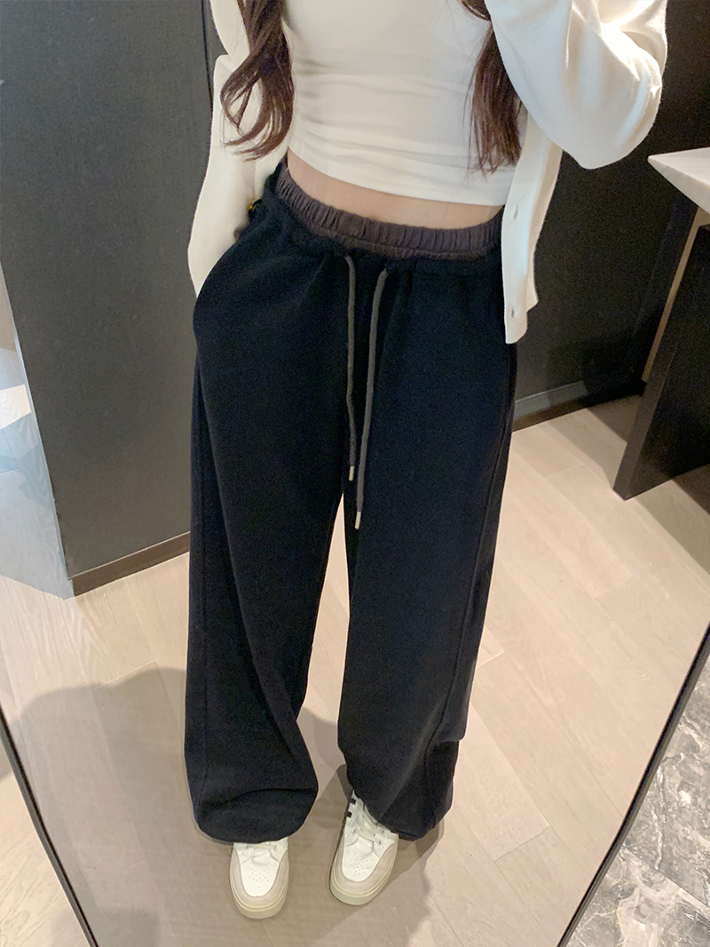 [리얼샷 하이 퀄리티] 바느질 컬러 대비 허리 스포츠 바지 여성 봄 · 가을 새 교수형 느낌 발가락 느슨하게 넓은 다리 바지