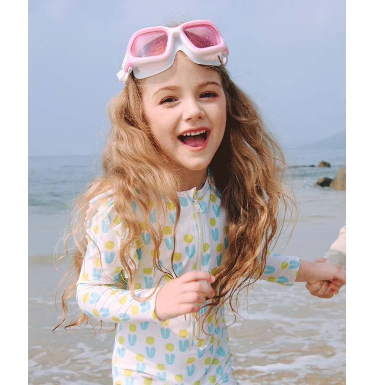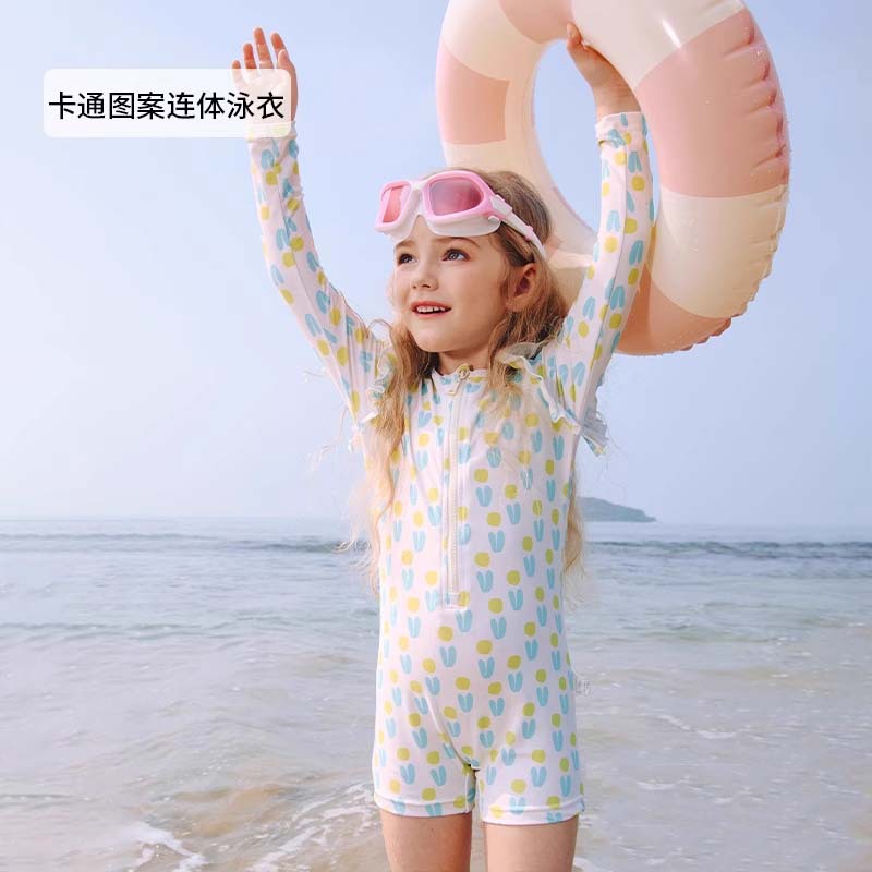 여아용 녹색과 파란색 패턴 원피스 수영복, 청소년용 자외선 차단 긴팔 반바지 수영복, 자외선 차단 비치 스포츠 스타일스토어 가기