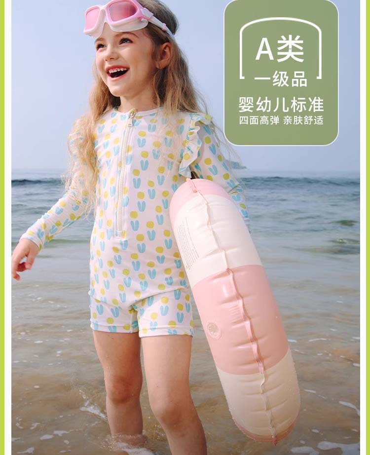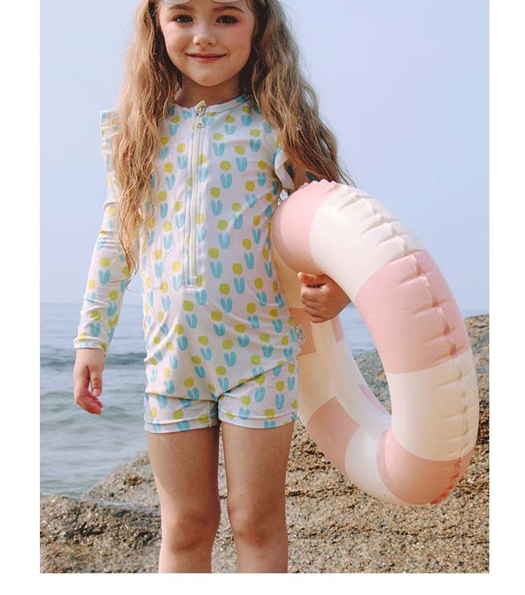 여아용 녹색과 파란색 패턴 원피스 수영복, 청소년용 자외선 차단 긴팔 반바지 수영복, 자외선 차단 비치 스포츠 스타일
