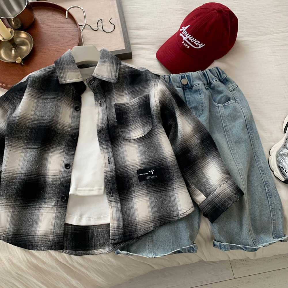 소년 격자 무늬 셔츠 긴 소매 2025 새로운 어린이 탑 봄과 가을 어린이 셔츠 소년 서양식 코트 얇은스토어 가기