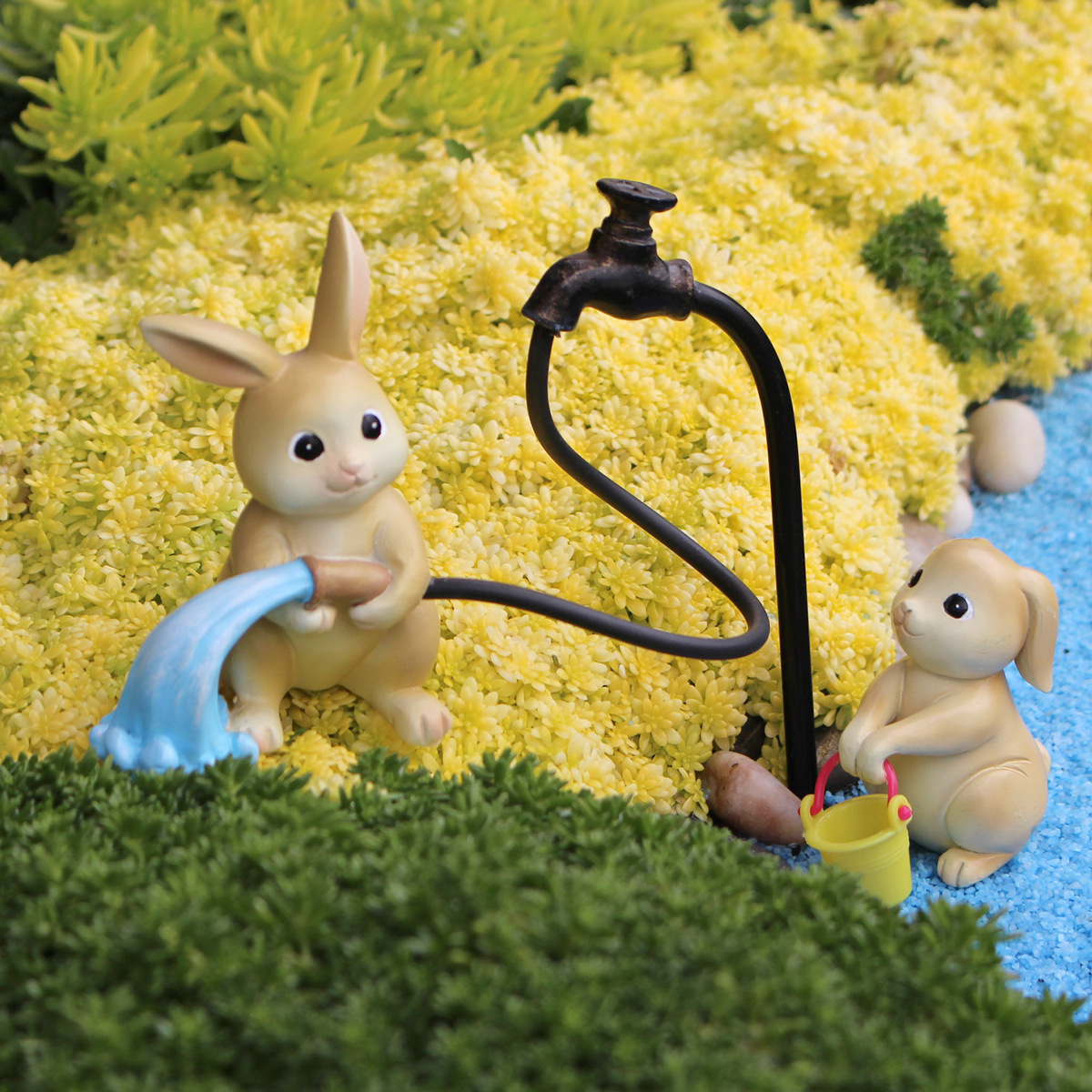 재고 새로운 토끼 물 세트 두 개의 귀여운 수지 공예 장식품 부활절 홈 가구 데스크탑 정원 장식스토어 가기