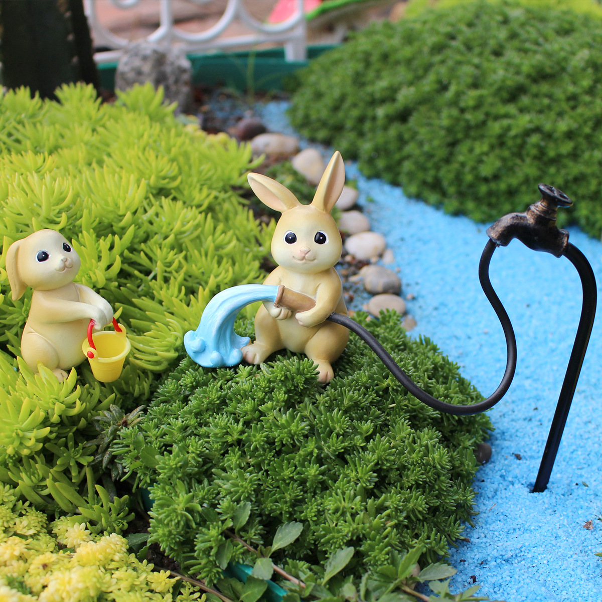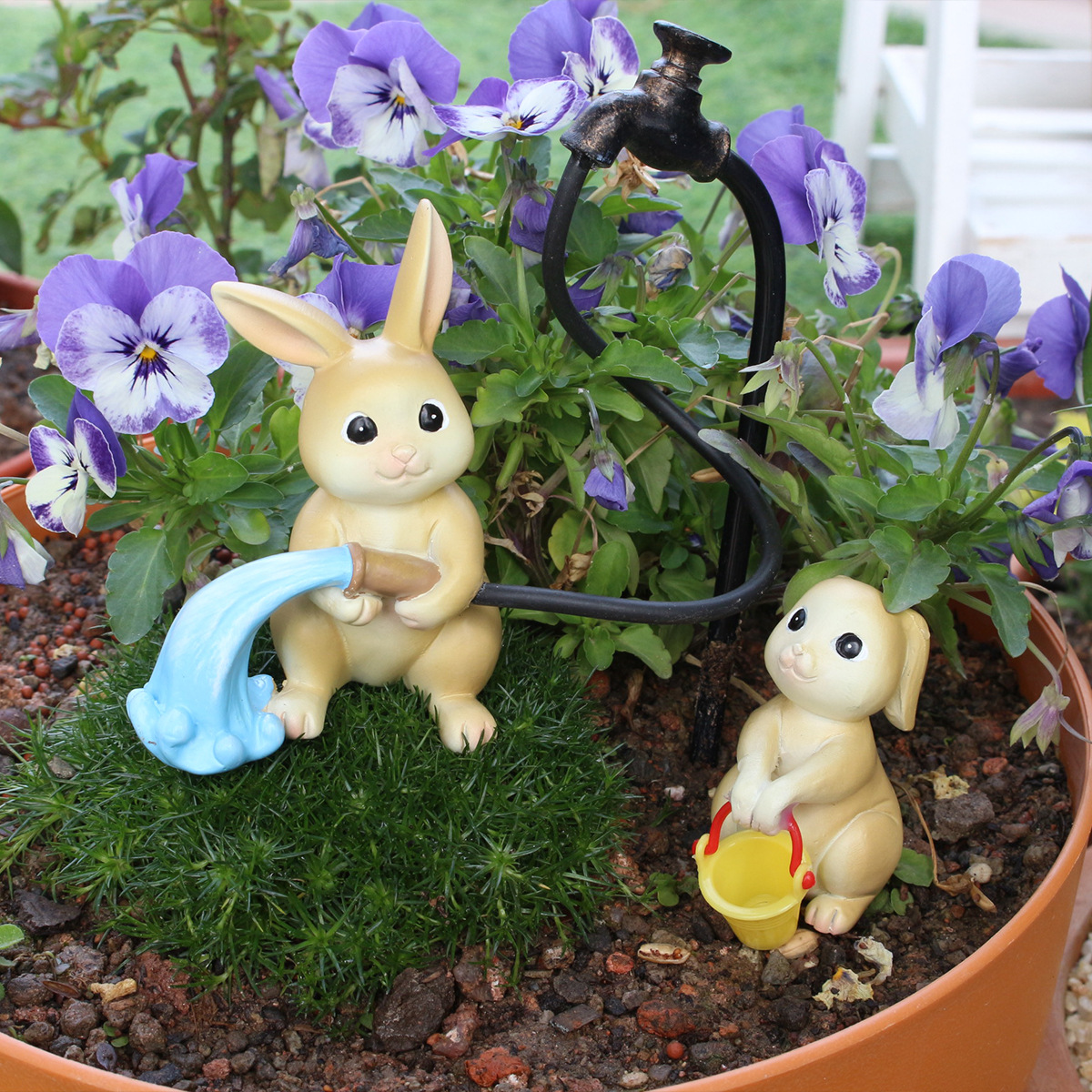 재고 새로운 토끼 물 세트 두 개의 귀여운 수지 공예 장식품 부활절 홈 가구 데스크탑 정원 장식