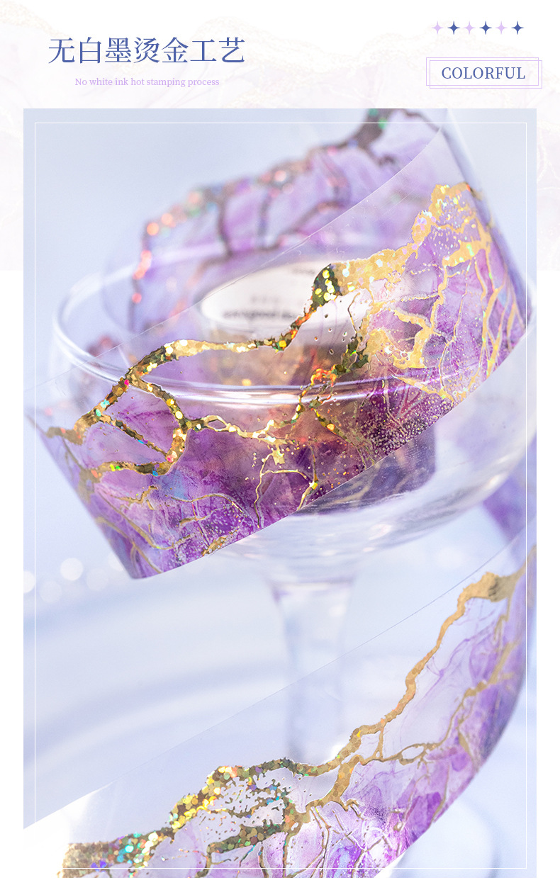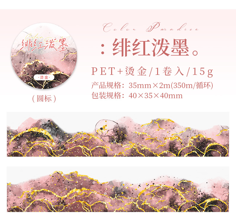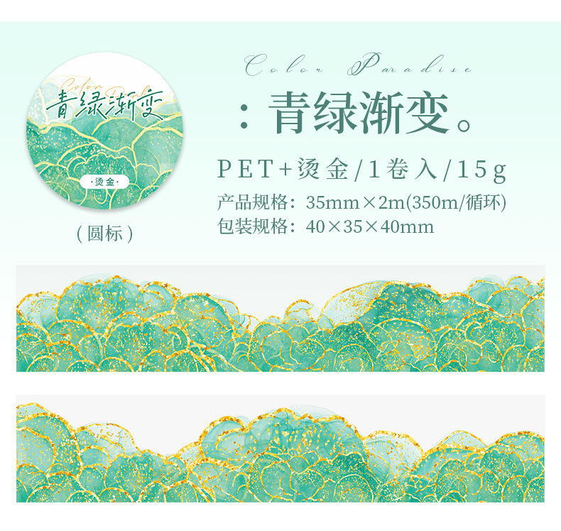 컬러 파라다이스 수채화 비네팅 금박을 입힌 PET 테이프 복고풍 비네팅 금박 손 계정 장식 DIY 소재 테두리