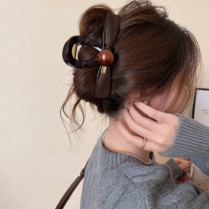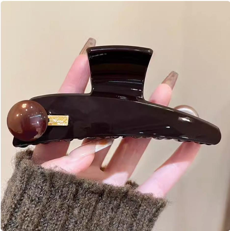 진주 미디엄 그랩 클립 여성의 2025 새로운 스타일 하프 헤어 백 헤드 헤어 클립 우아한 상어 클립 헤어 액세서리