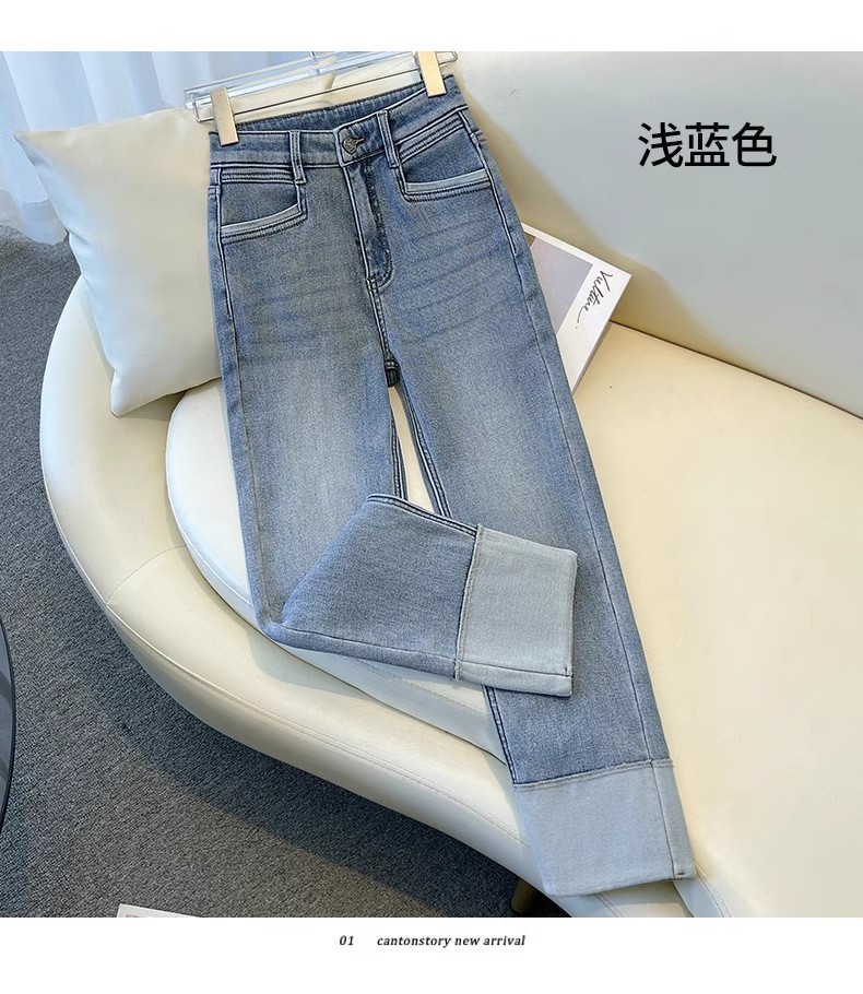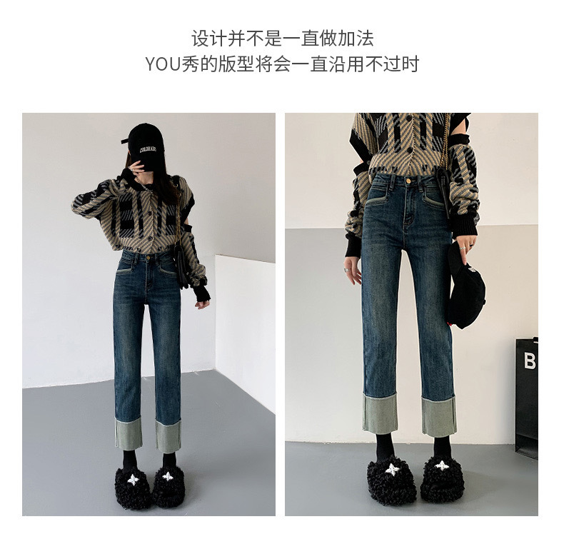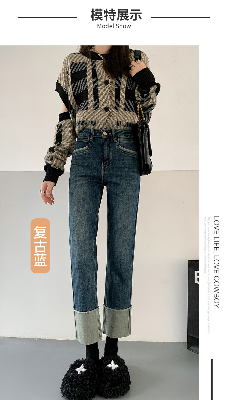 여성용 9부 스트레이트 진, 하이웨이스트, 슬림핏, 키 작은 여성용 스트레이트 팬츠스토어 가기