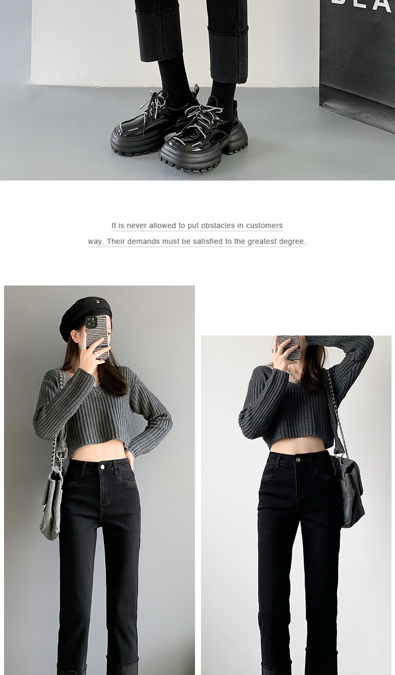 여성용 9부 스트레이트 진, 하이웨이스트, 슬림핏, 키 작은 여성용 스트레이트 팬츠