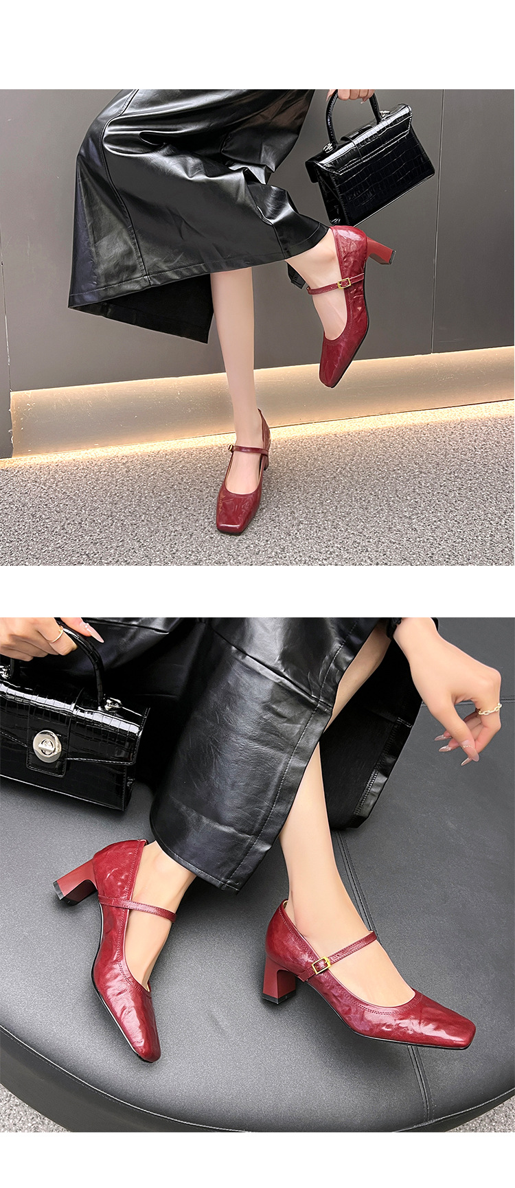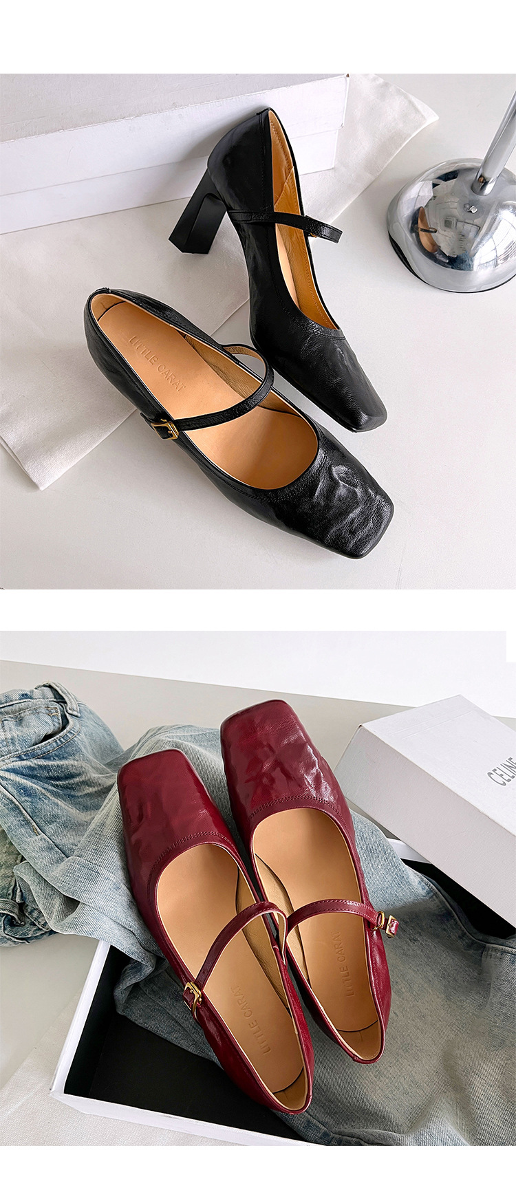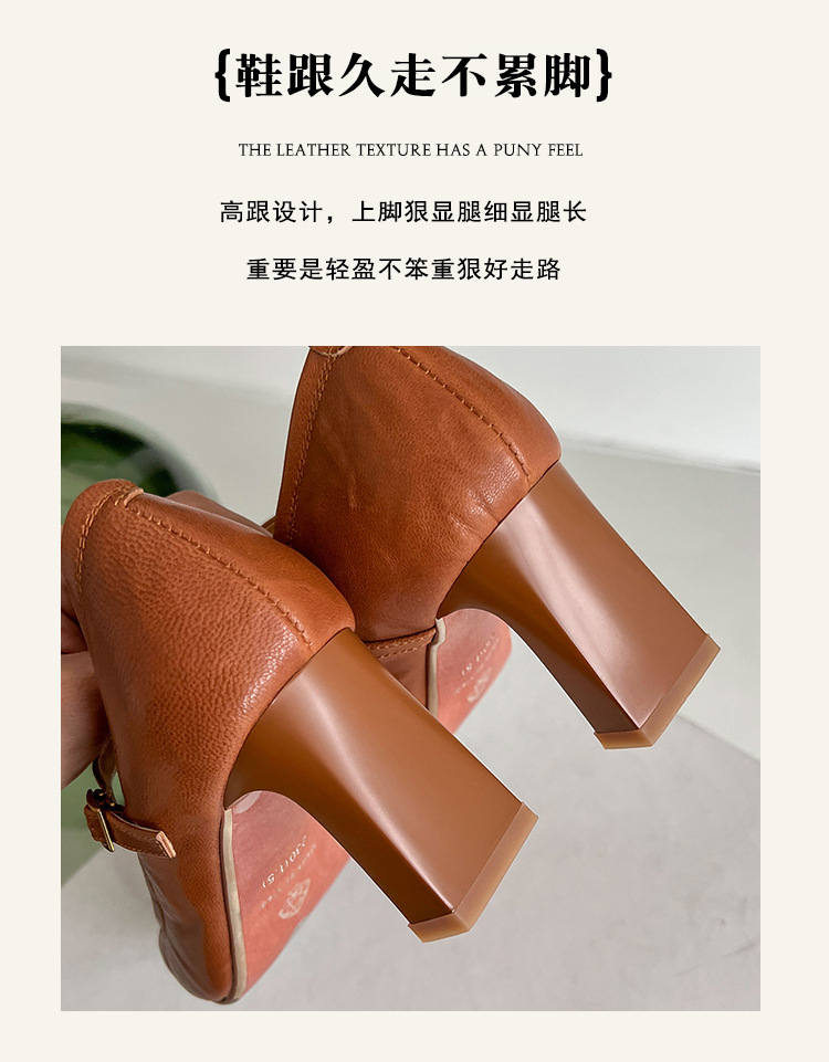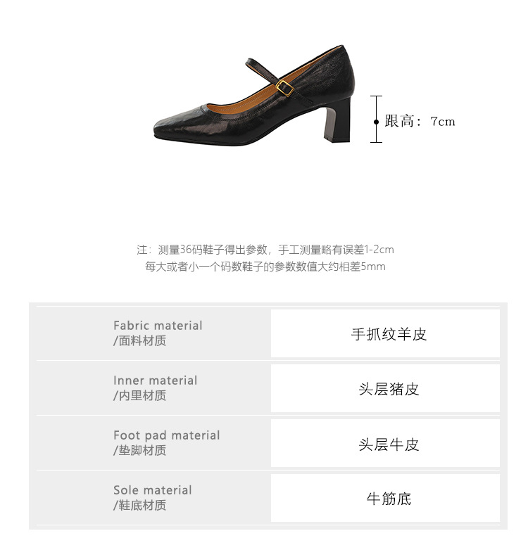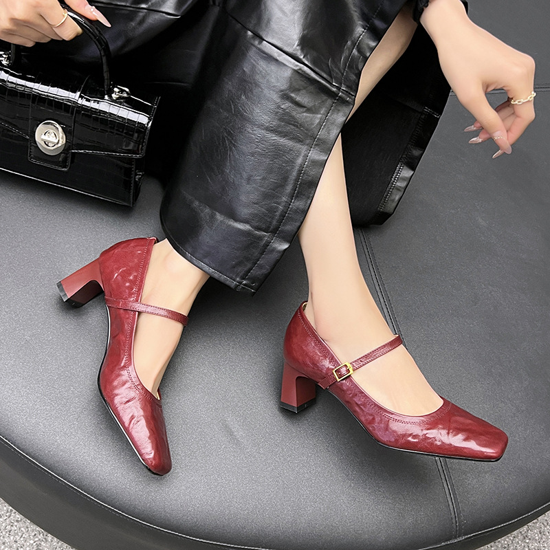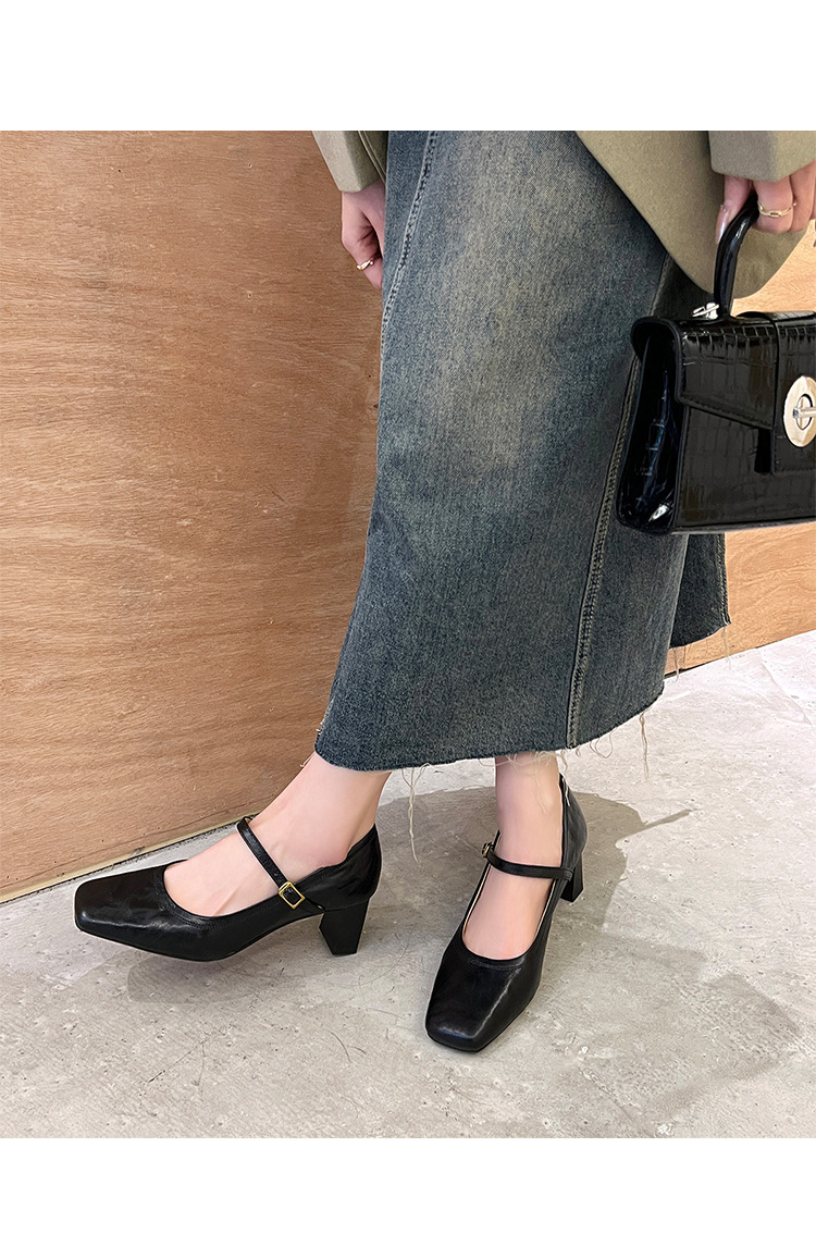 양가죽 버전 블랙 하이힐 여성 프랑스 복고풍 블록 힐 Mary Jane 신발 여성 신발 피곤하지 않은 발 부드러운 가죽스토어 가기