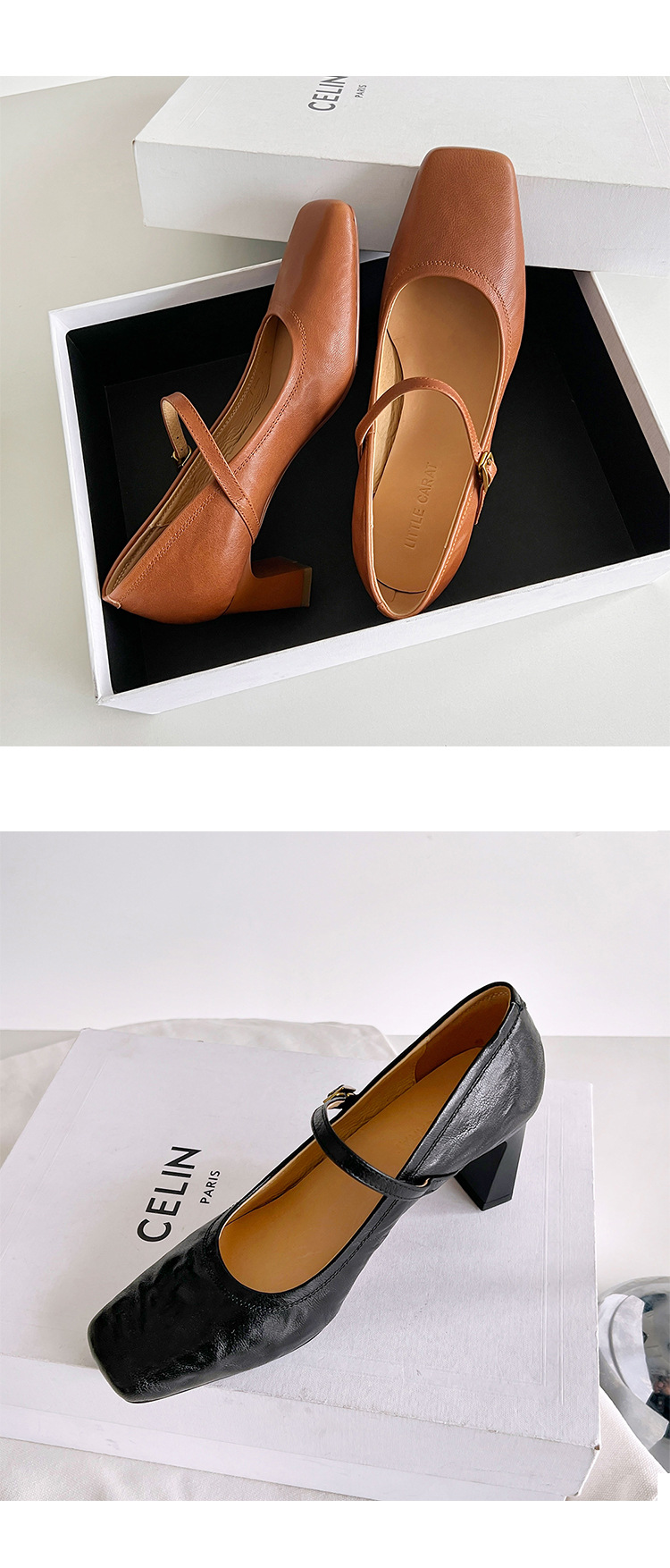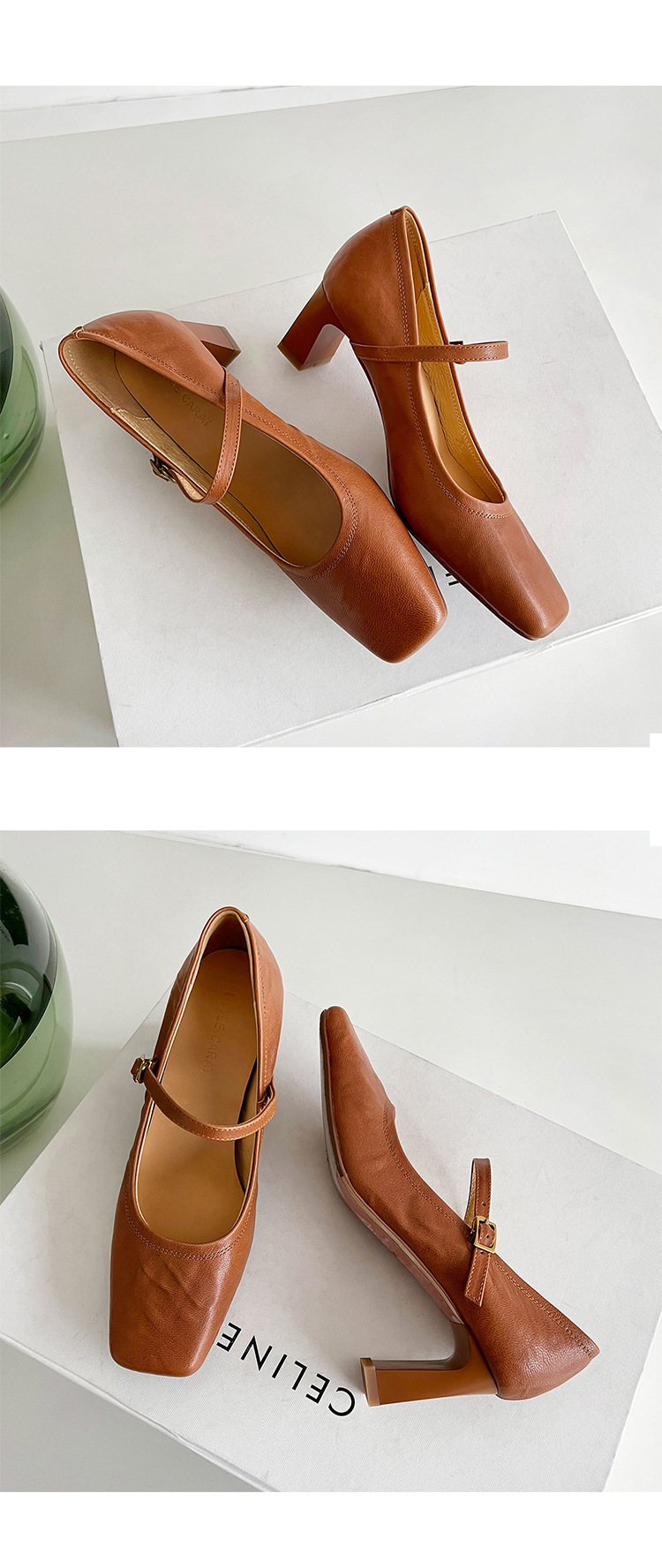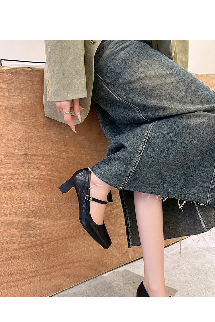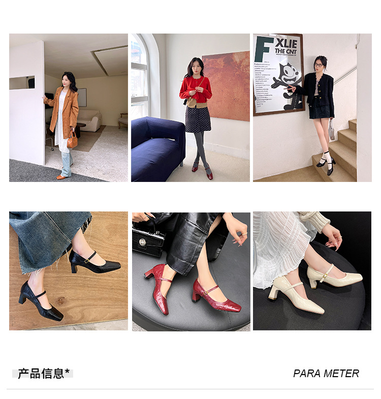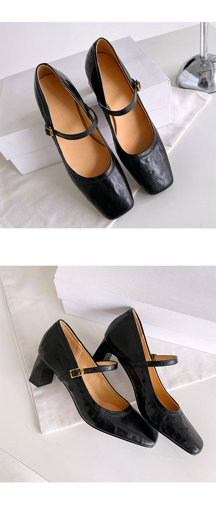 양가죽 버전 블랙 하이힐 여성 프랑스 복고풍 블록 힐 Mary Jane 신발 여성 신발 피곤하지 않은 발 부드러운 가죽스토어 가기