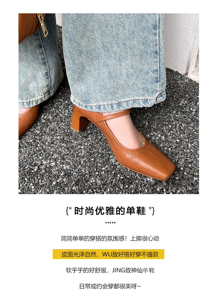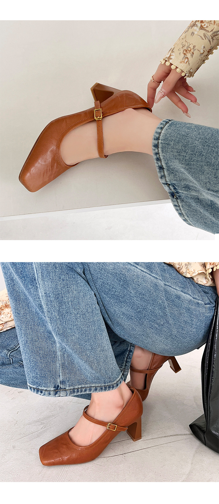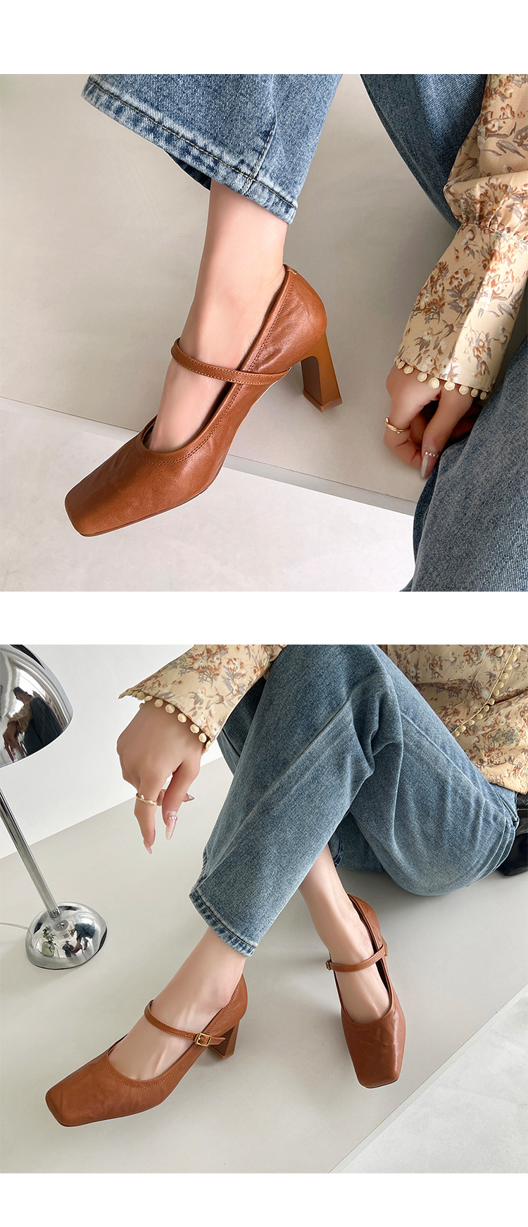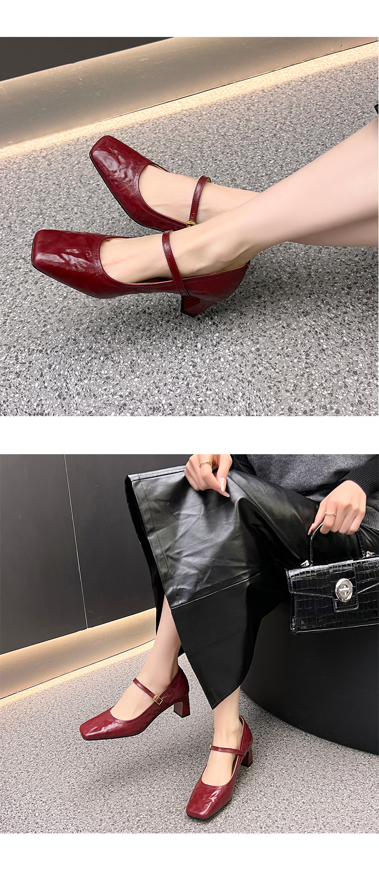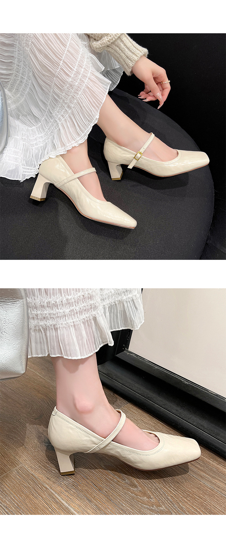 양가죽 버전 블랙 하이힐 여성 프랑스 복고풍 블록 힐 Mary Jane 신발 여성 신발 피곤하지 않은 발 부드러운 가죽스토어 가기
