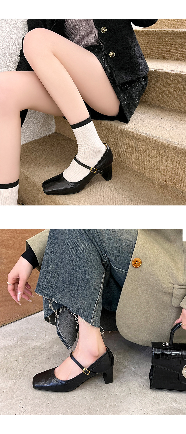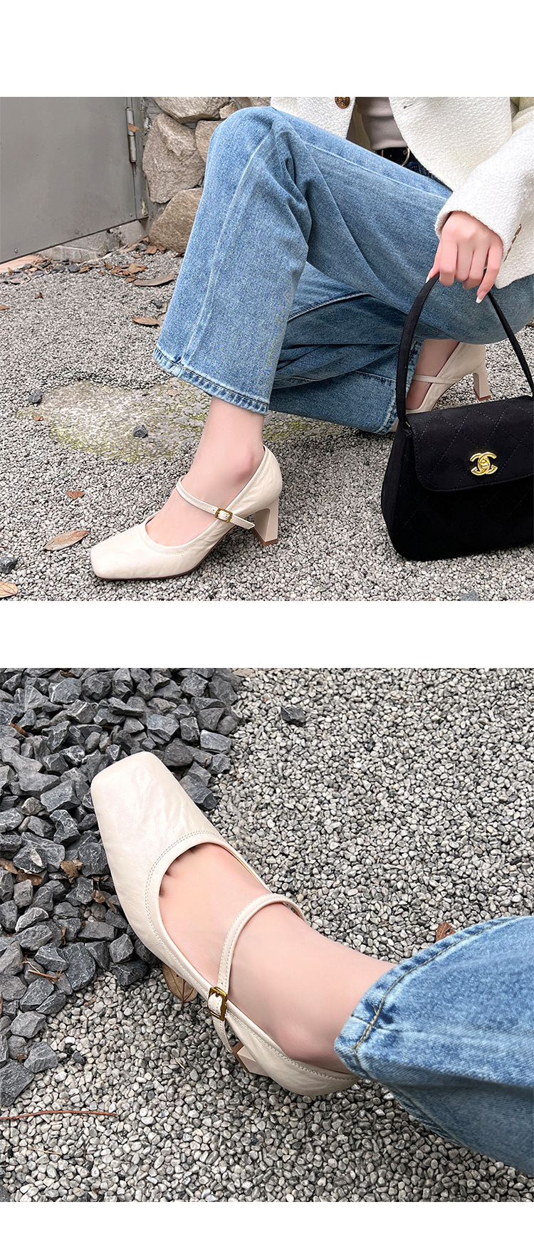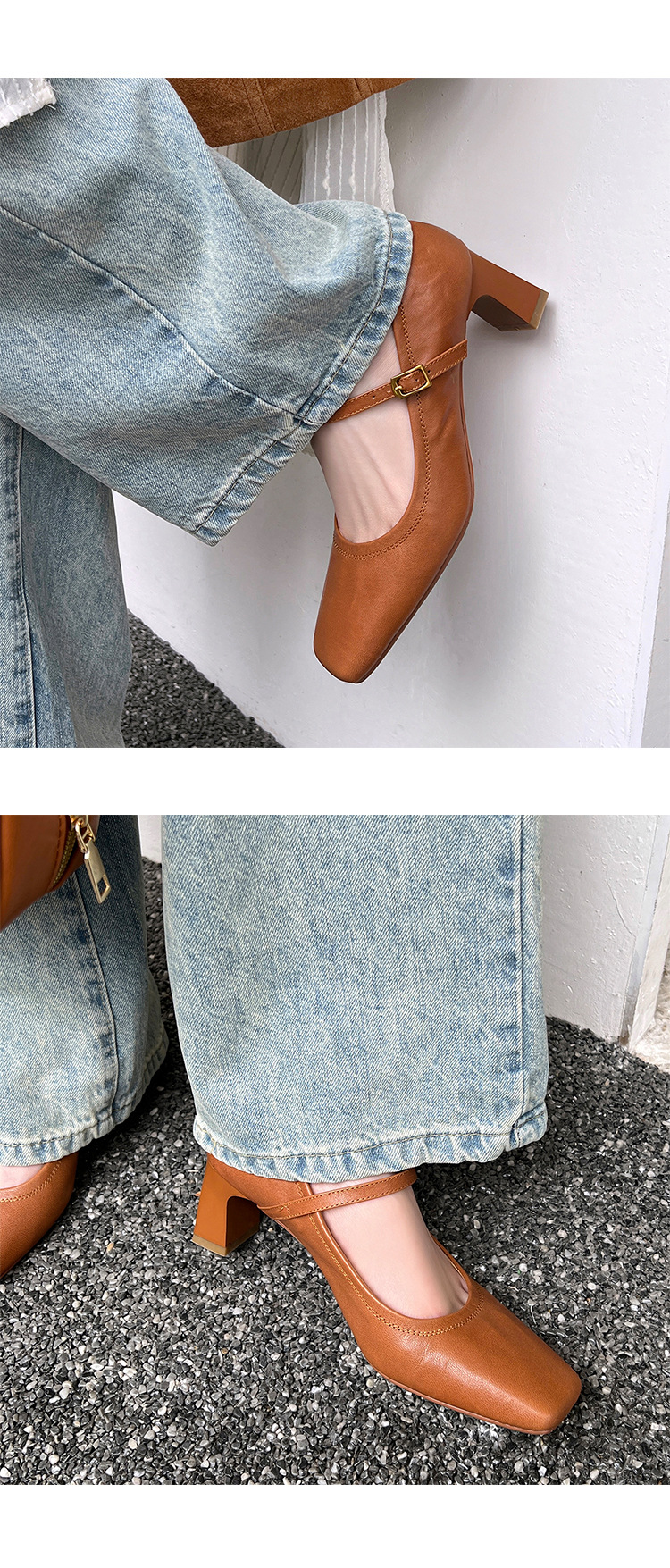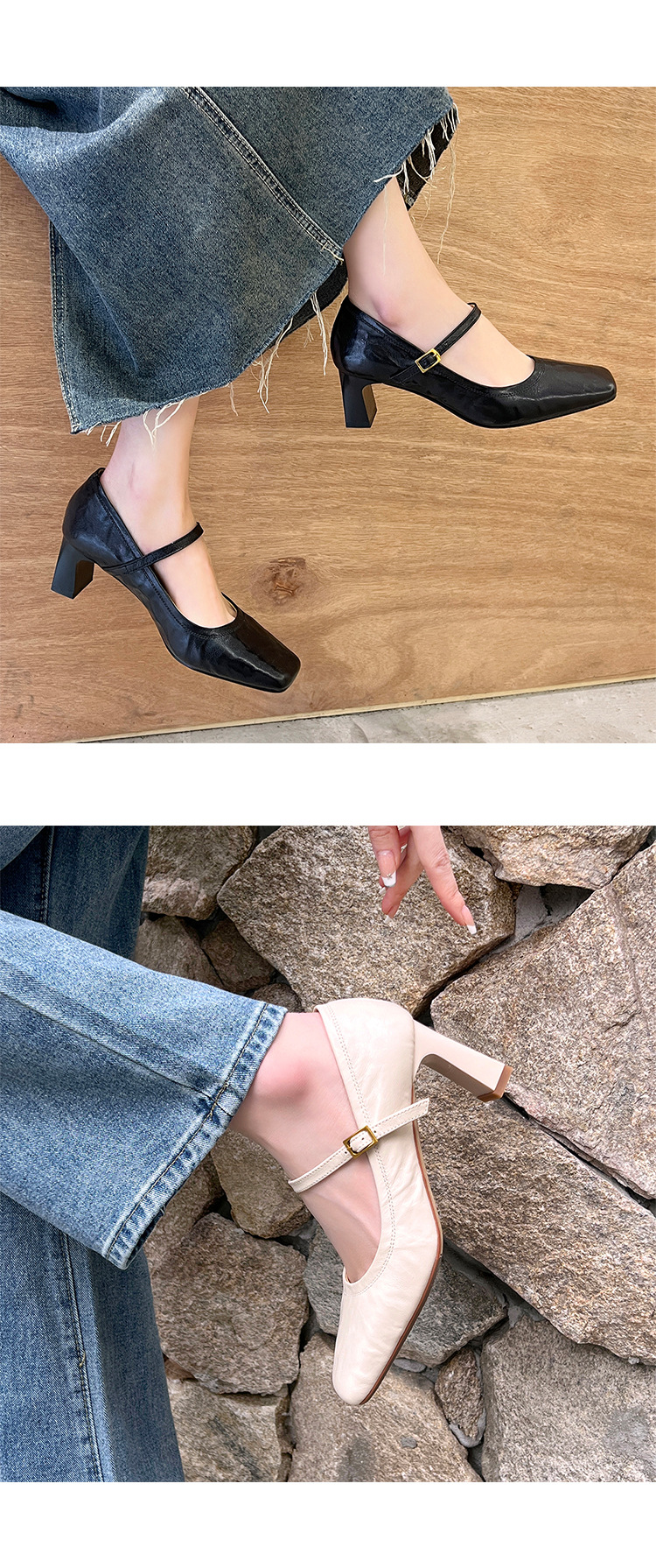 양가죽 버전 블랙 하이힐 여성 프랑스 복고풍 블록 힐 Mary Jane 신발 여성 신발 피곤하지 않은 발 부드러운 가죽스토어 가기