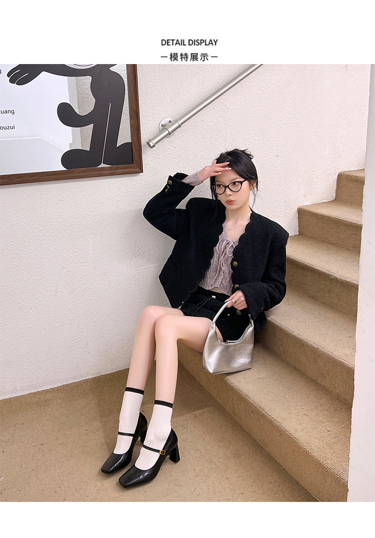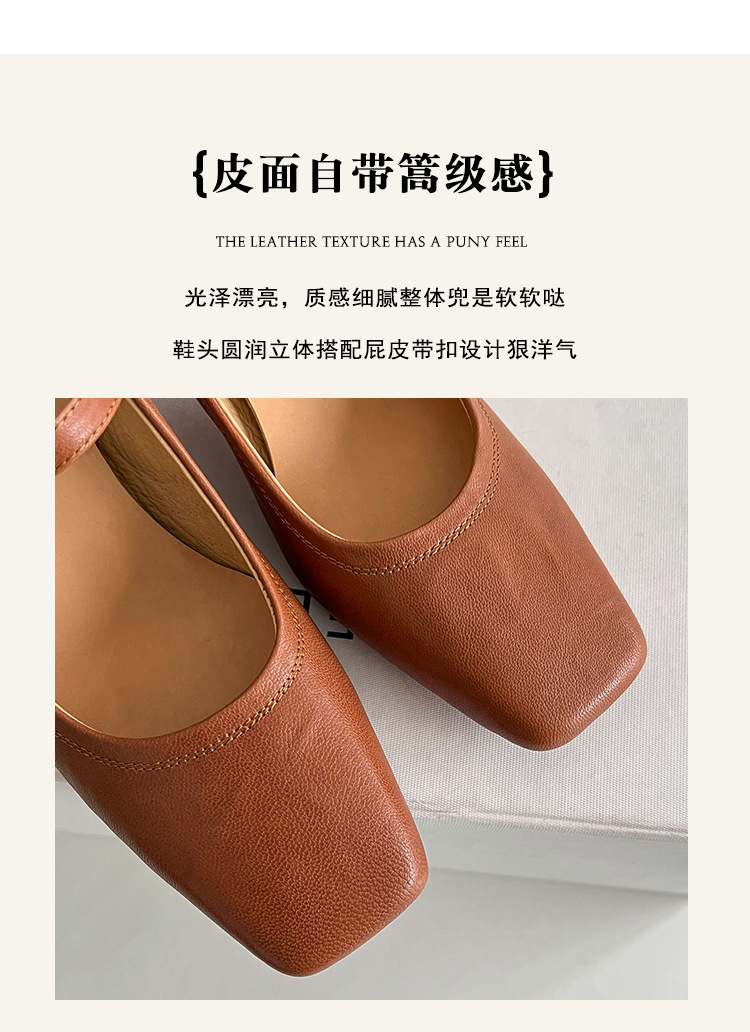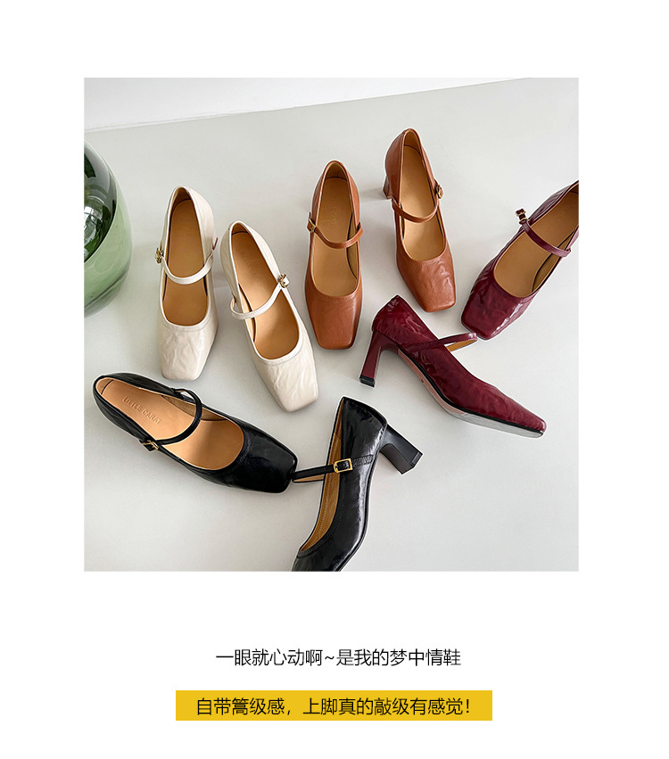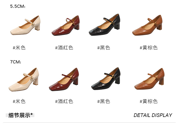 양가죽 버전 블랙 하이힐 여성 프랑스 복고풍 블록 힐 Mary Jane 신발 여성 신발 피곤하지 않은 발 부드러운 가죽