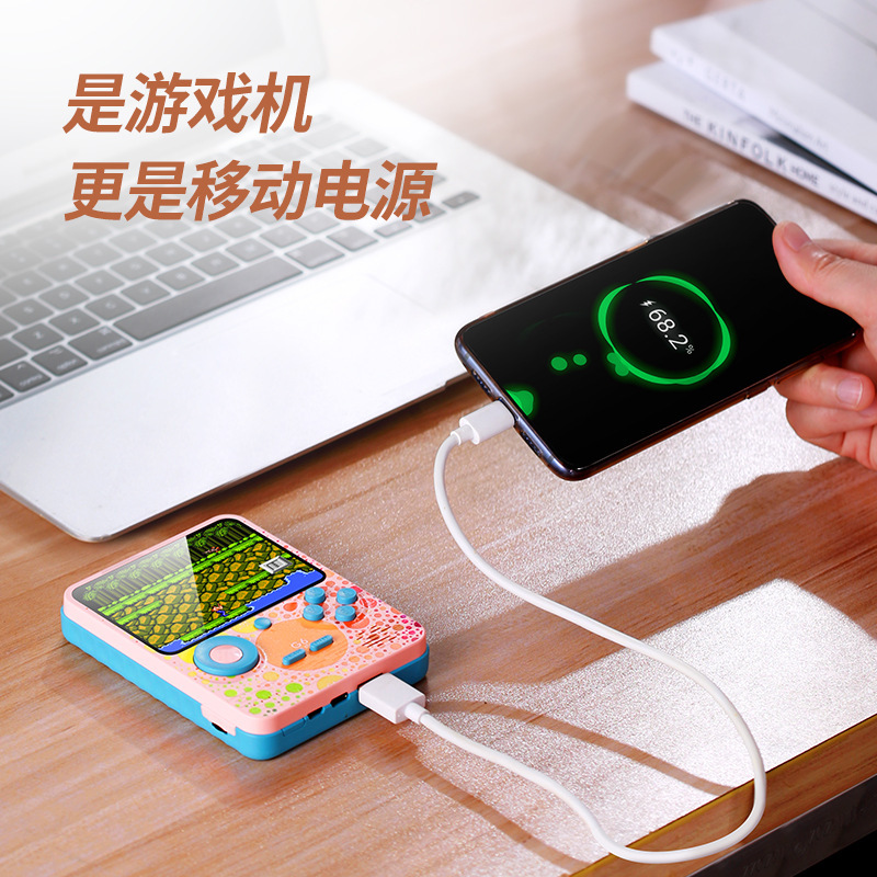 국경 간 개인 모델 Macaron 666 하나의 다채로운 싱글 더블 핸드 헬드 게임기는 충전 보물로 사용할 수 있습니다