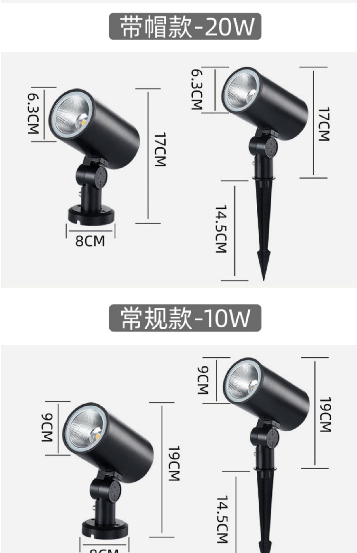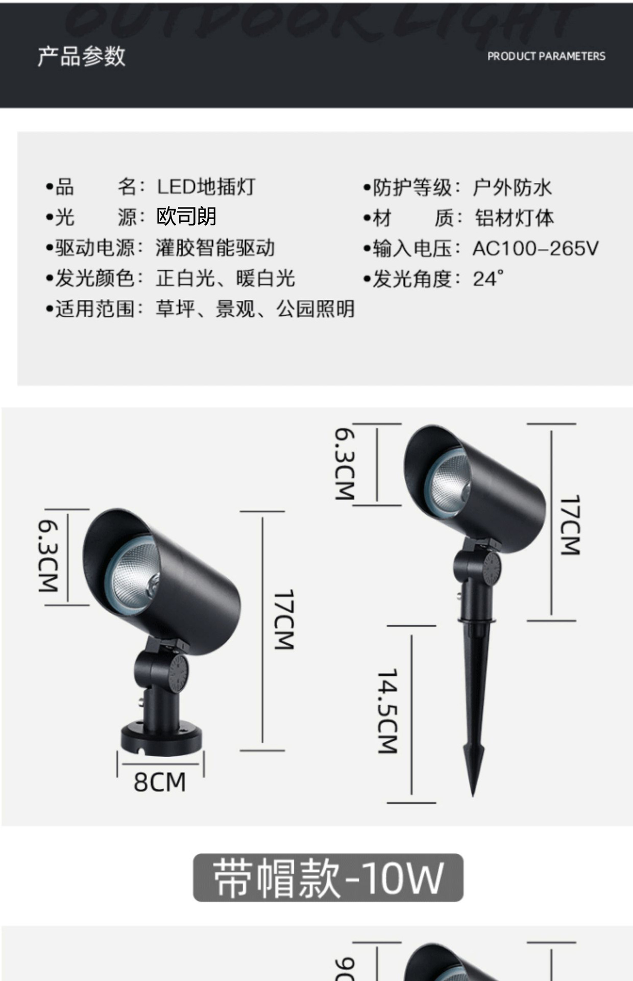 • 모델 B 10W 따뜻한 빛 - 지상형