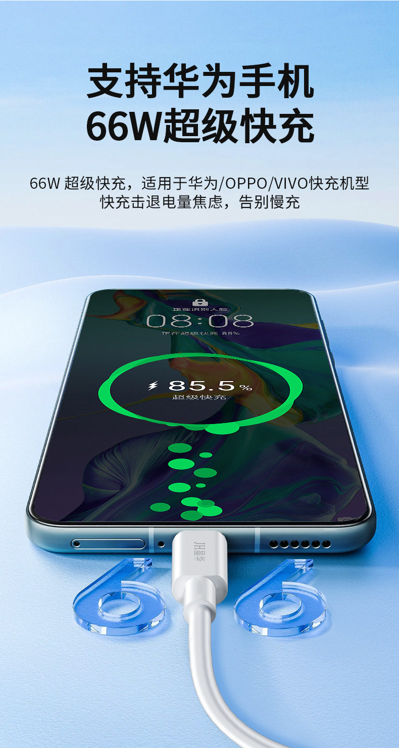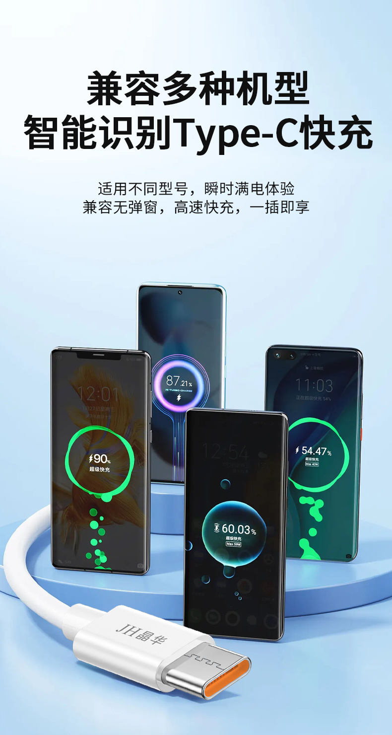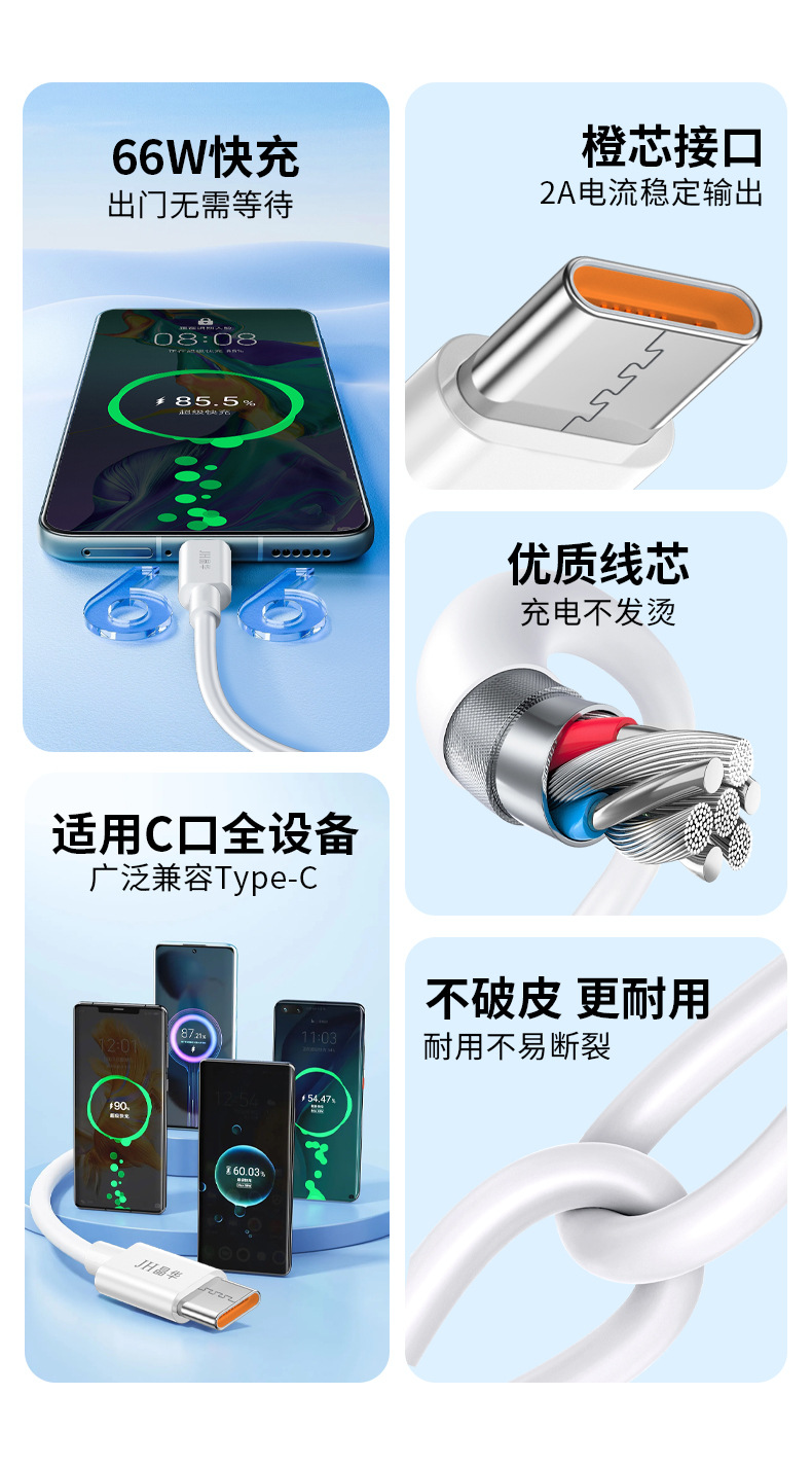 화이트 6A 충전 라인 충전 라인 세트 Typec 단일 헤드 화웨이 oppo 안드로이드 휴대 전화 일반 데이터