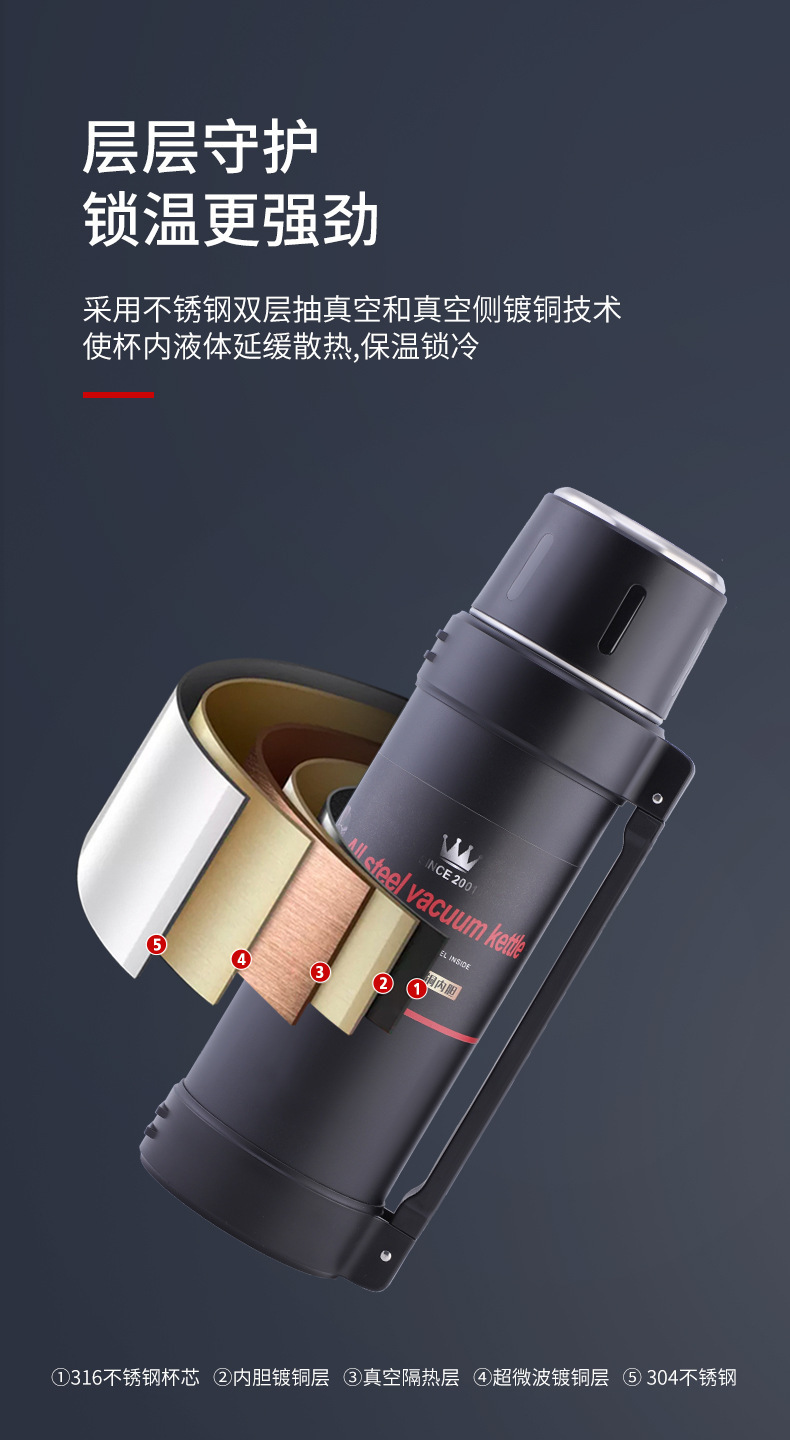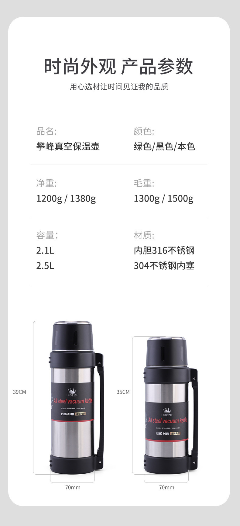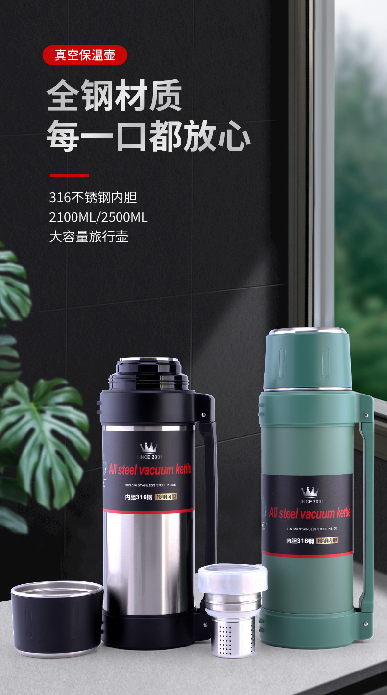 대용량 316 스테인레스 스틸 더블 레이어 진공 머그잔 여행 냄비 야외 등산 주전자 남자의 스포츠 주전자