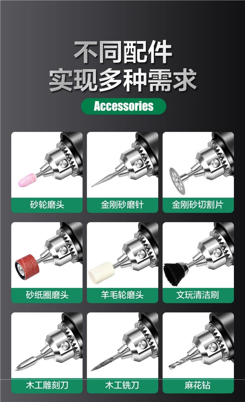 Minette 고출력 전기 그라인더 작은 휴대용 목재 코어 루트 옥 조각 도구 절단 연마 유물