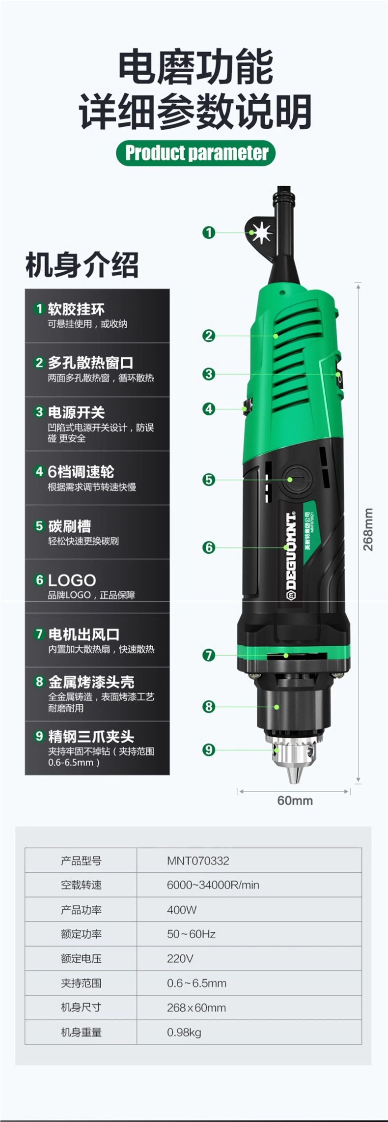 • [400W/6.5mm 대형 클램프] 목각 및 심각 조각 패키지