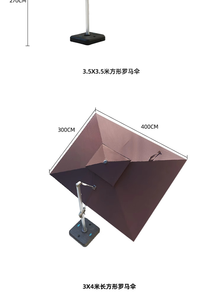 • 3* 4m 정사각형 로마 우산(150kg 물 탱크 포함)