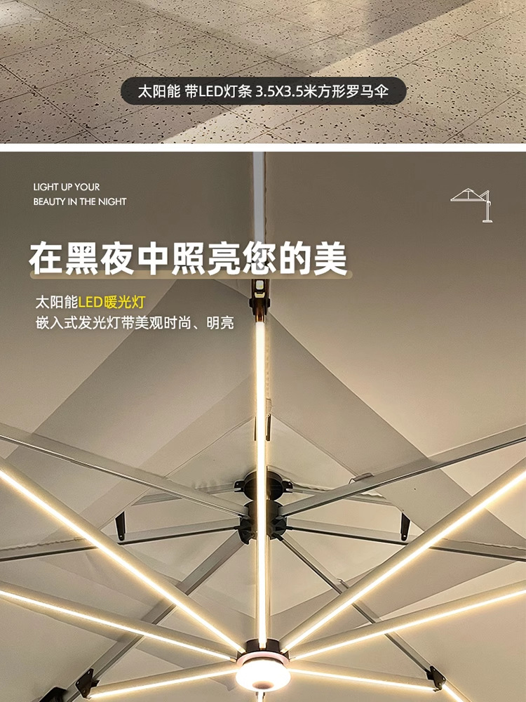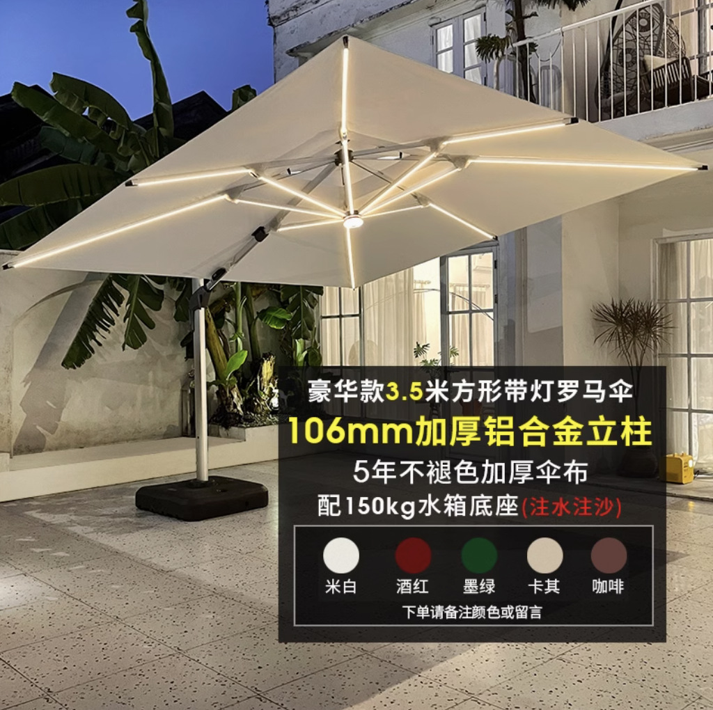 • 150kg 물탱크가 있는 3.5m 평방 태양광 LED 조명 로마 우산