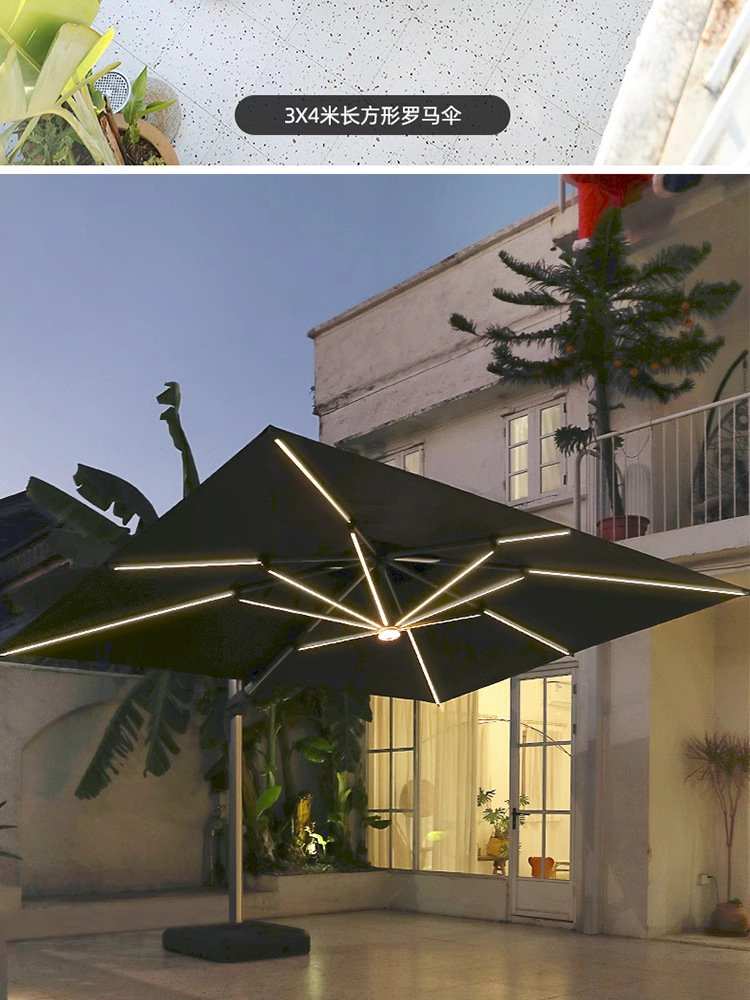 • 3* 4m 정사각형 태양광 LED 조명 로마 우산(150kg 물탱크 포함)