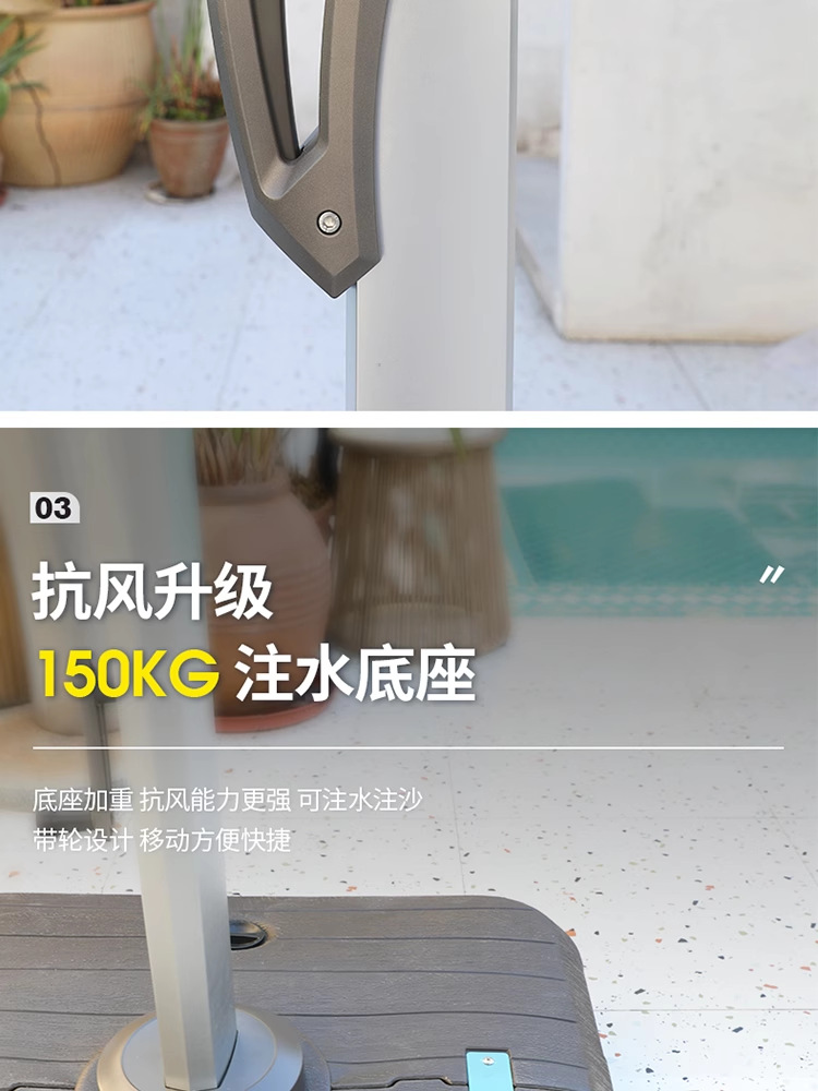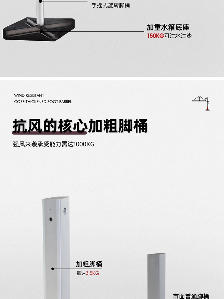 • 150kg 물탱크가 있는 3.5m각 로마 우산