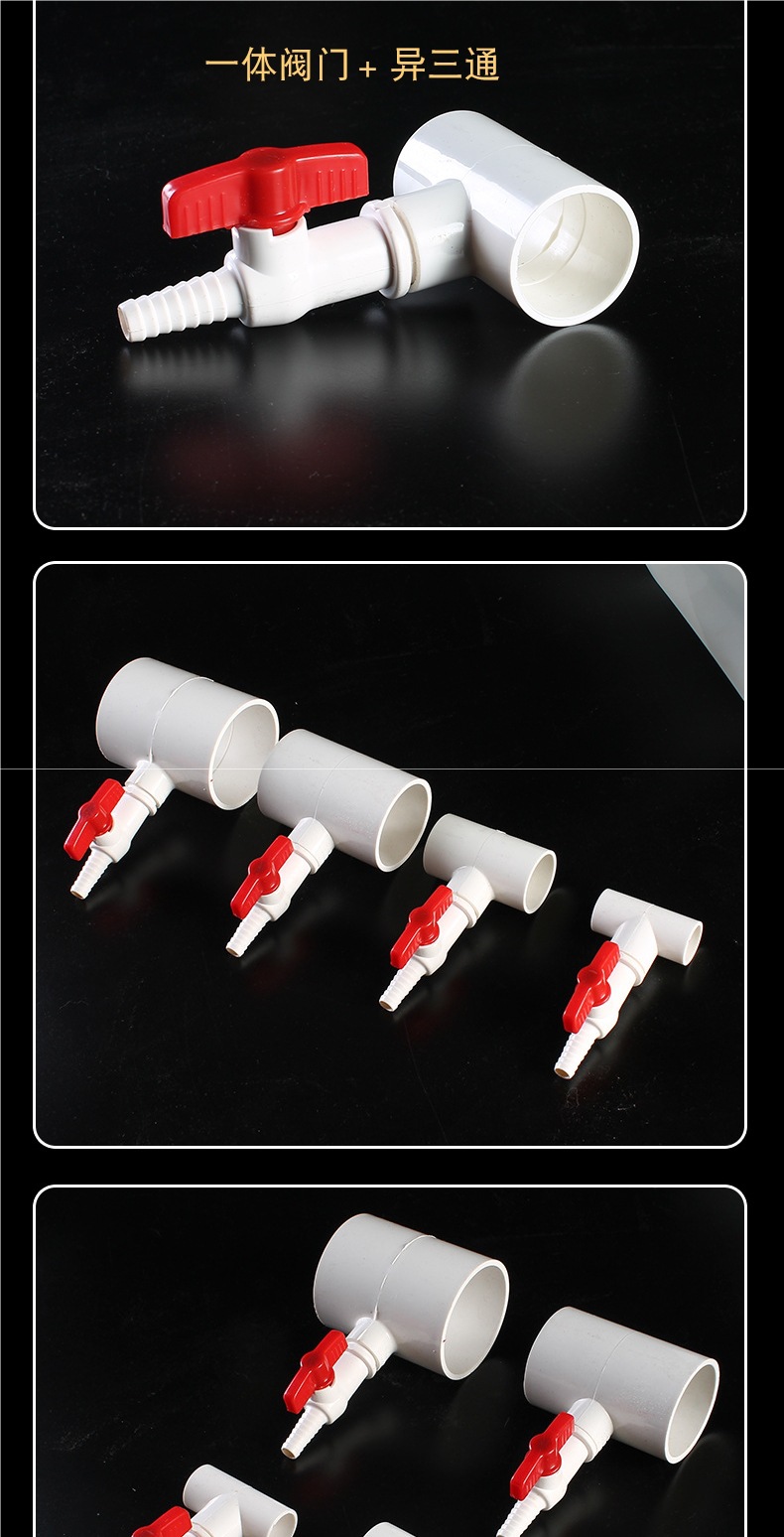 양식 가변 직경 4 방향 PVC 다른 직경 3 방향 탑 커넥터 나노 폭기 파이프 통합 밸브 10mm 산소