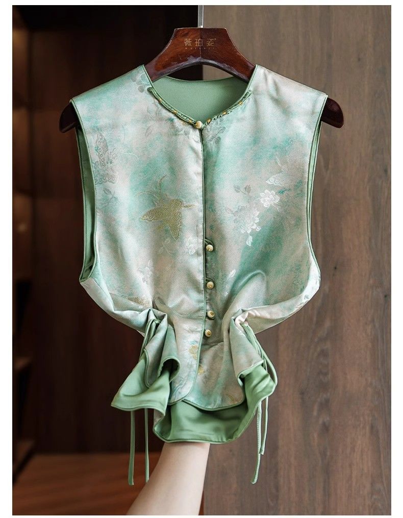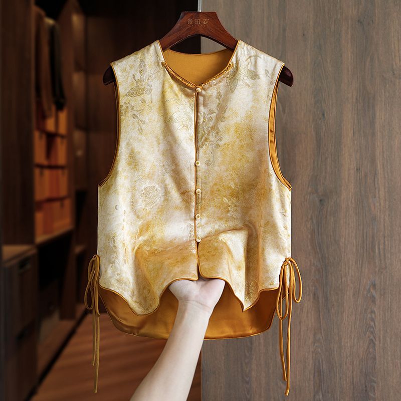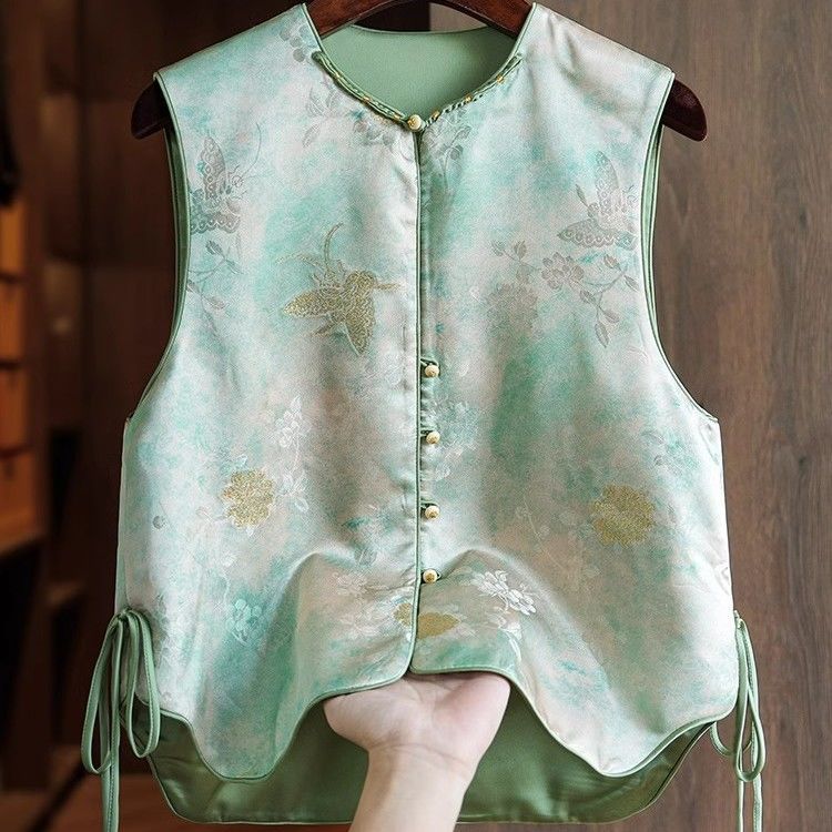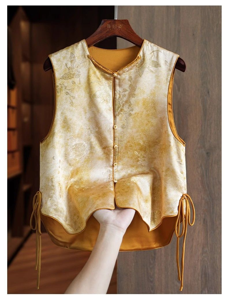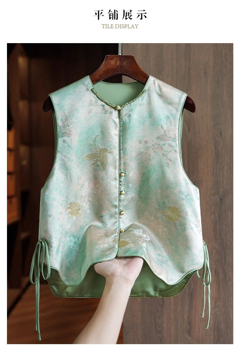 실제 촬영된 새로운 중국풍 자수 양면 조끼 여성용 2025 봄 여름 신상품 우아한 조끼스토어 가기
