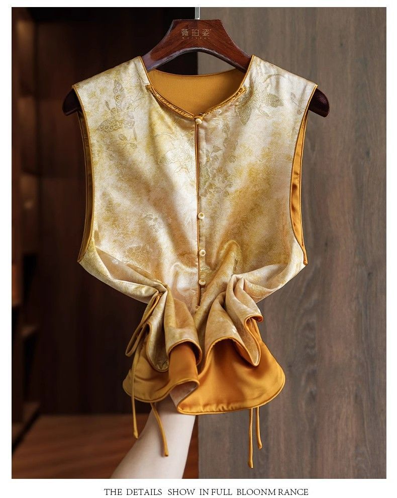 실제 촬영된 새로운 중국풍 자수 양면 조끼 여성용 2025 봄 여름 신상품 우아한 조끼
