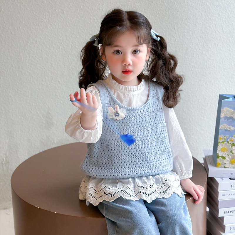 소녀 봄 레이스 셔츠 2025 새로운 어린이 세련된 유행베이스 셔츠 아기 탑 2 피스 세트스토어 가기