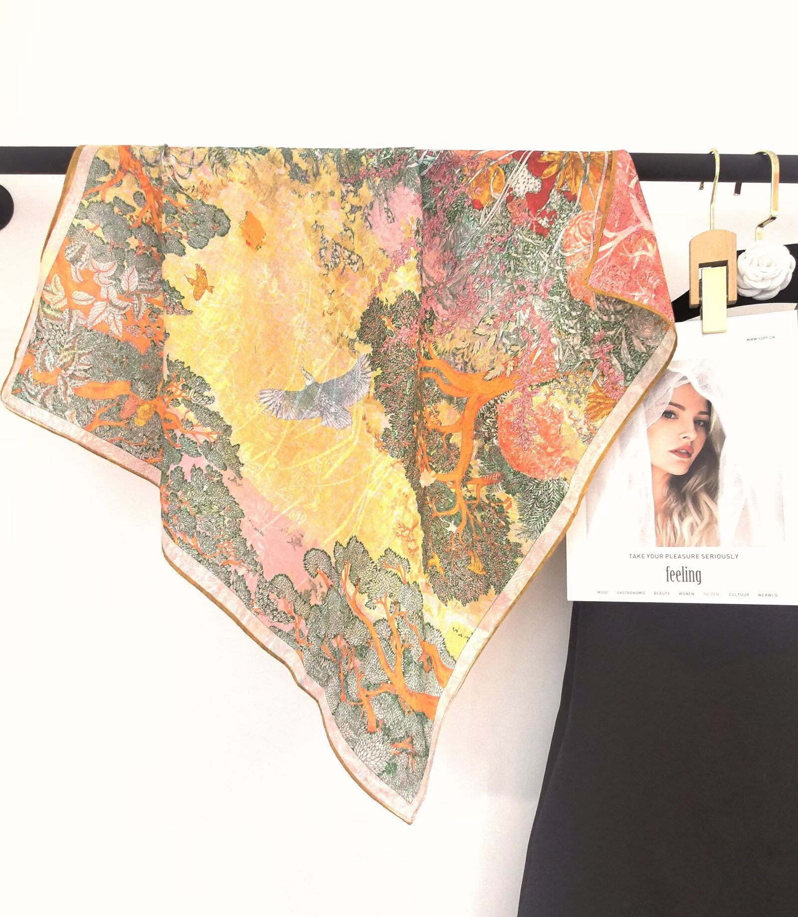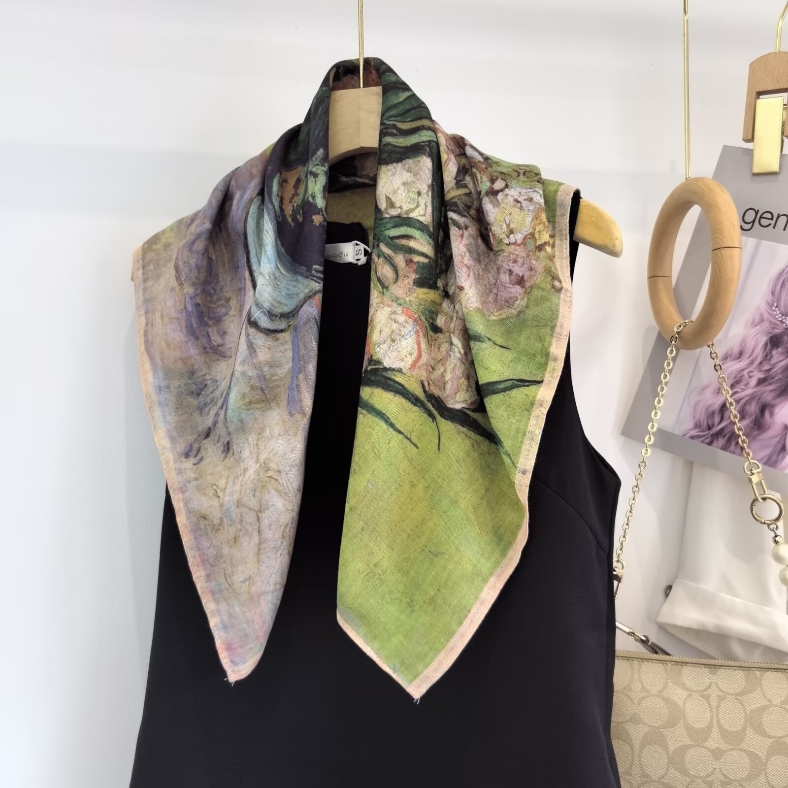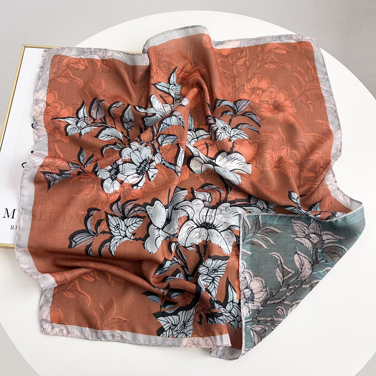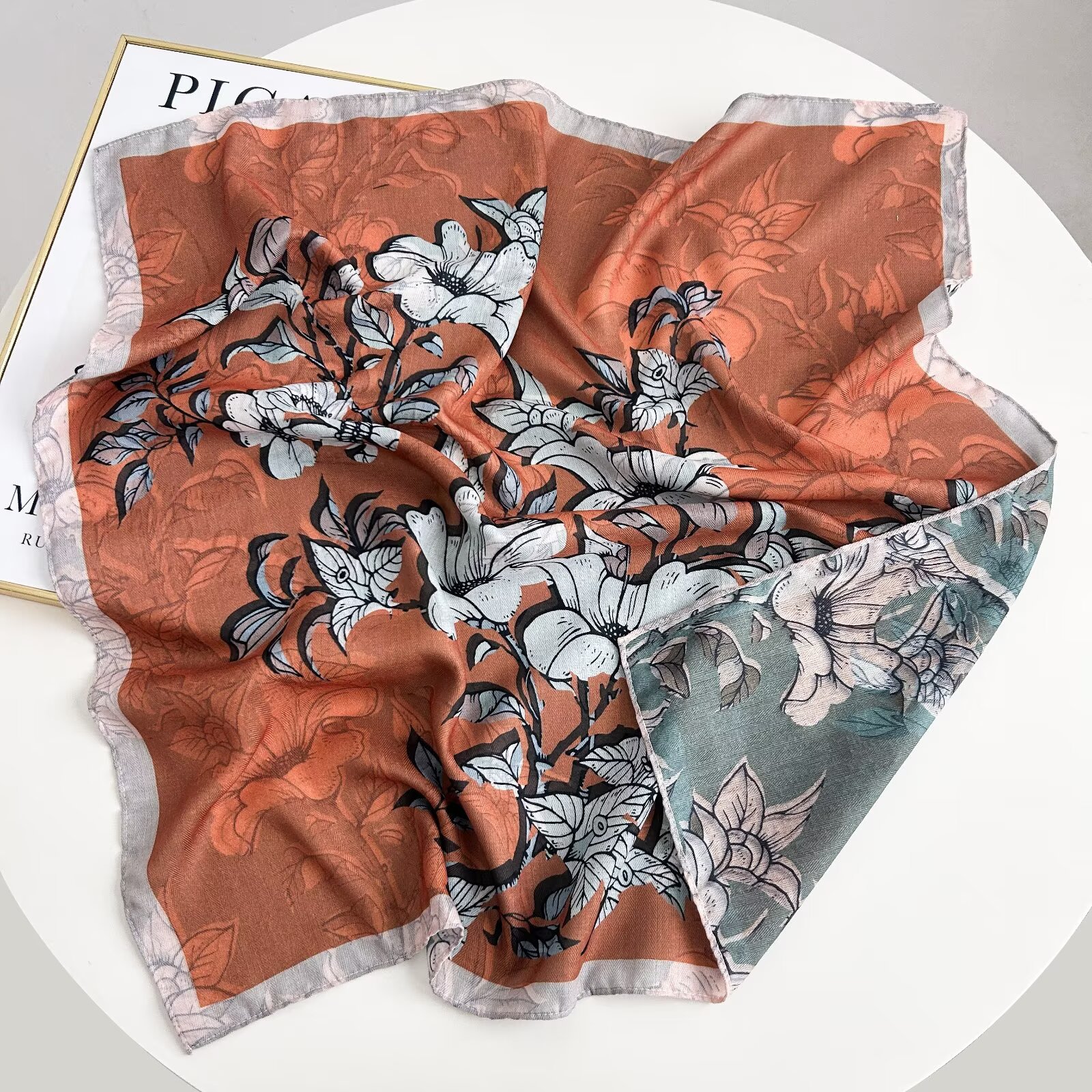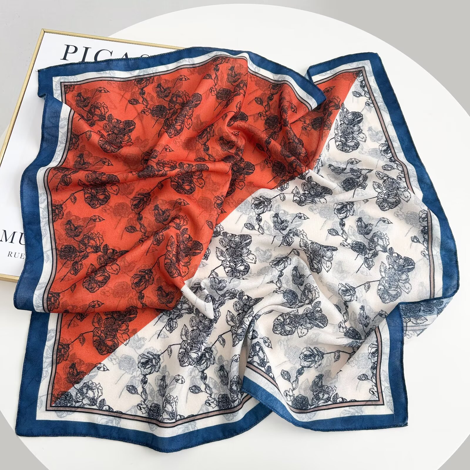 예술적 신선한 스타일 꽃 우아한 작은 광장 스카프 다기능 장식 스카프 패션 스카프 선 스크린 여성 목도리