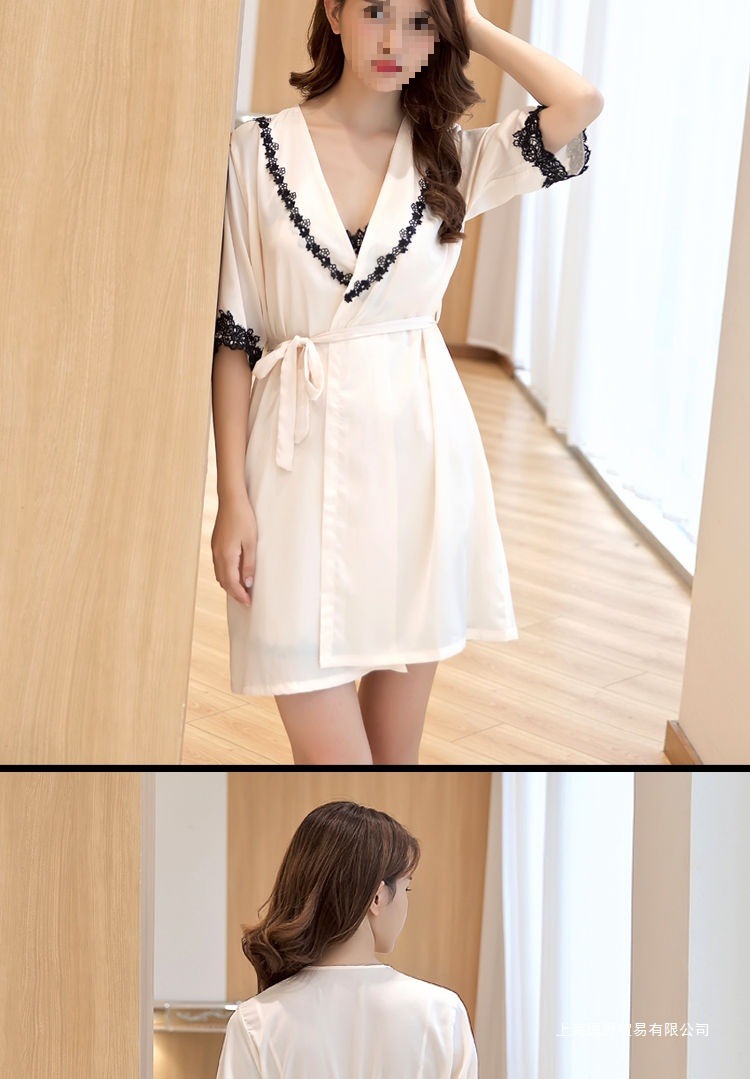 여름 섹시한 잠옷 여성의 봄과 가을 아이스 실크 슬링 나이트가운 실크 반소매 잠옷 얇은 잠옷 투피스 세트