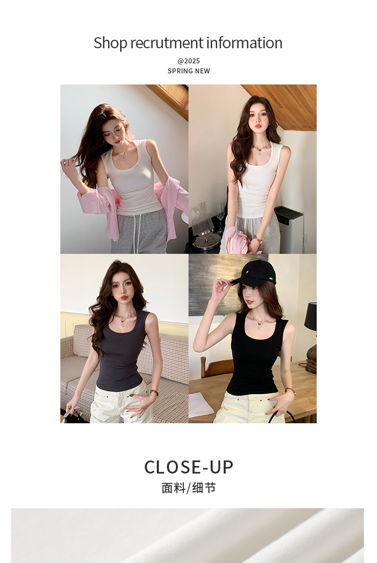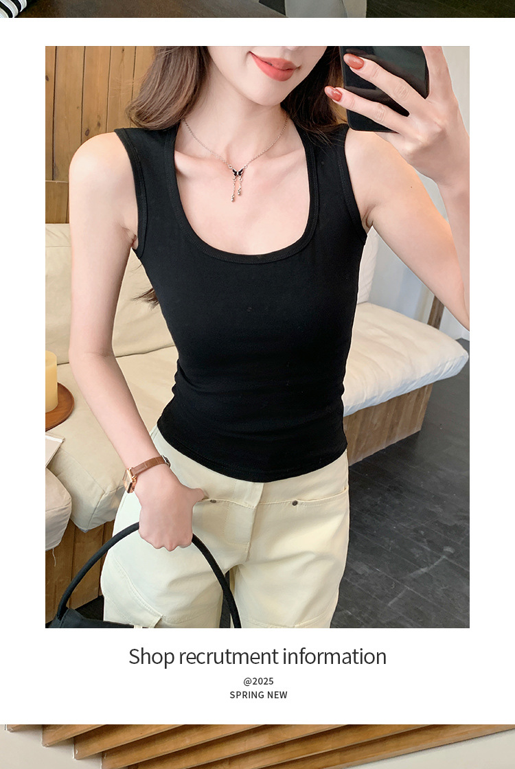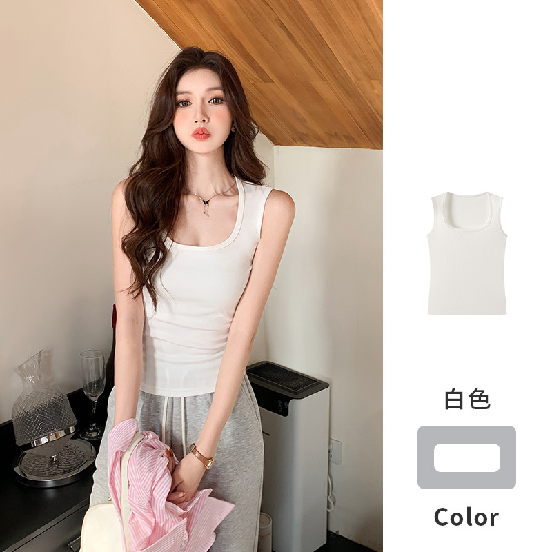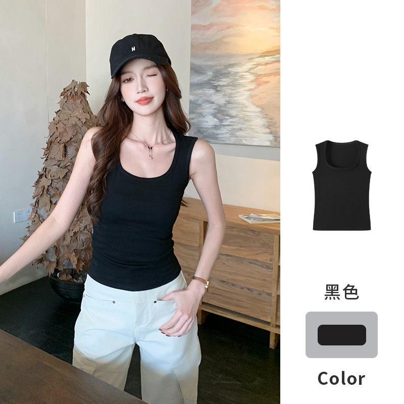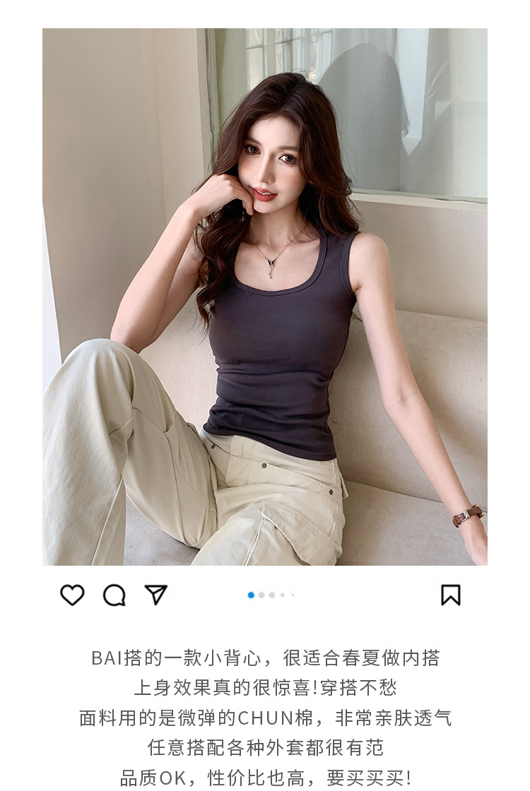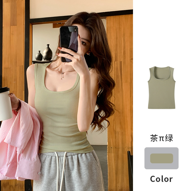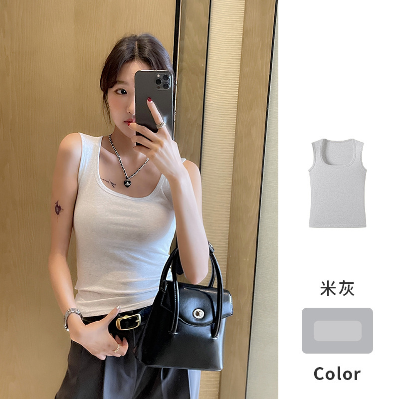 H349 여름 여성의 U-넥 슬링 유행 민소매 조끼 민소매 조끼 유방 커버 슬림 핏 심플 올 매치 텍스처 퓨어 코튼 티셔츠스토어 가기