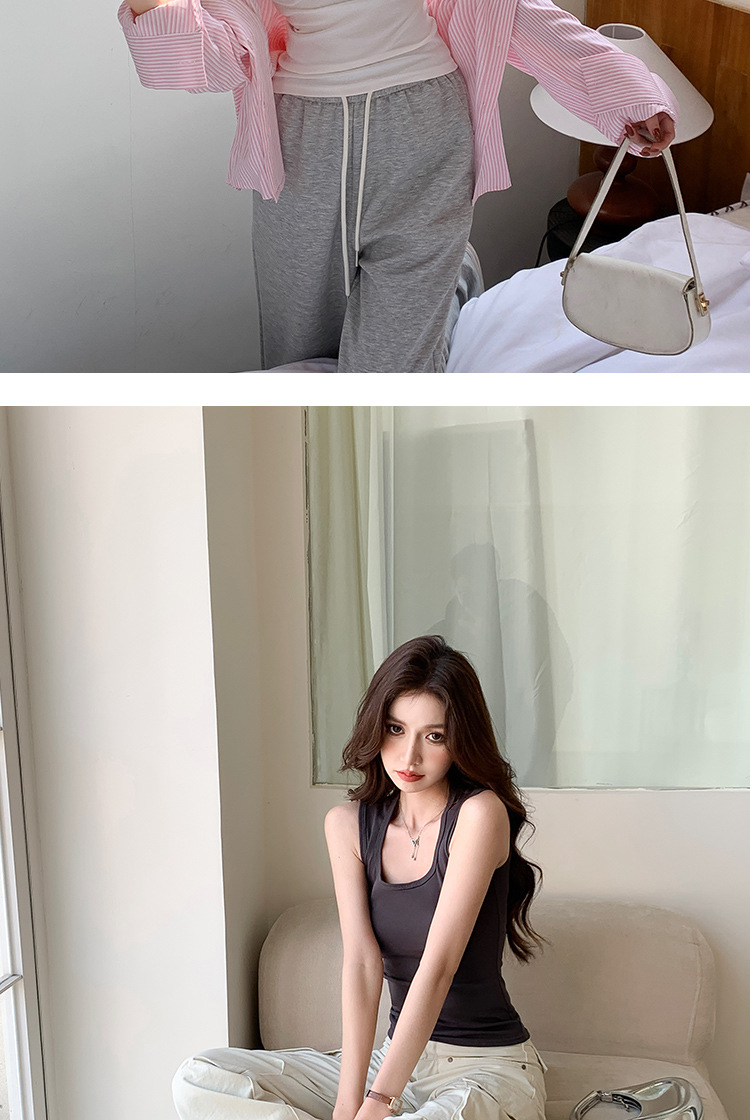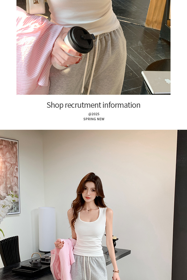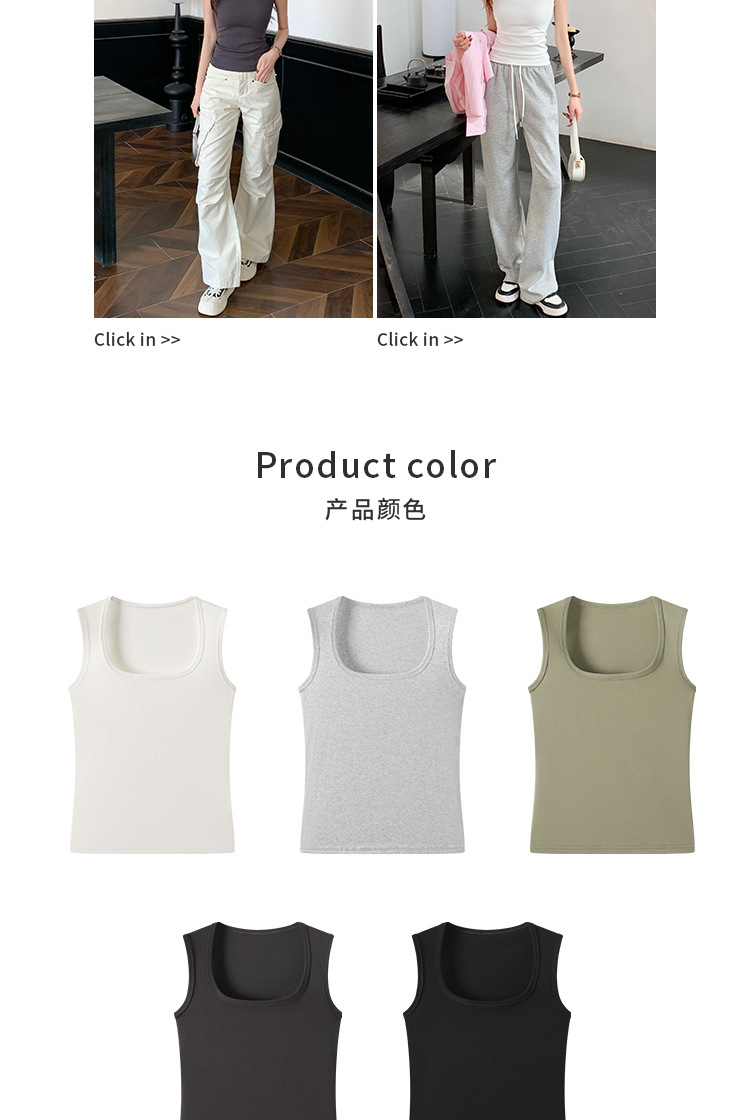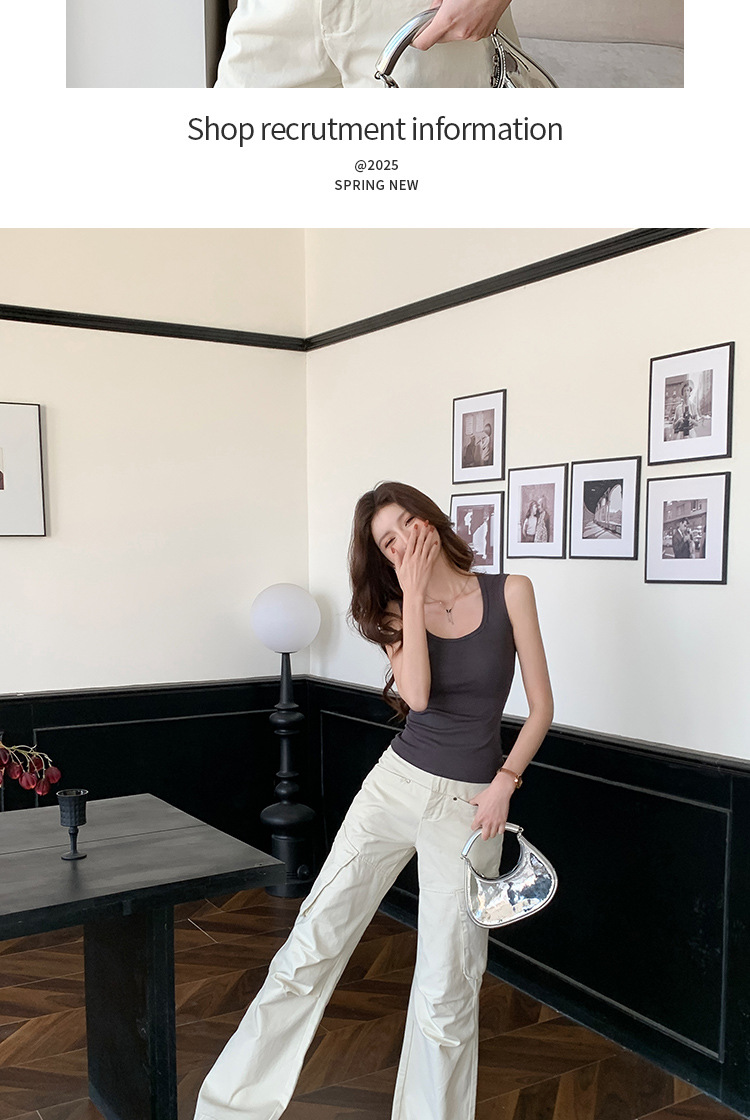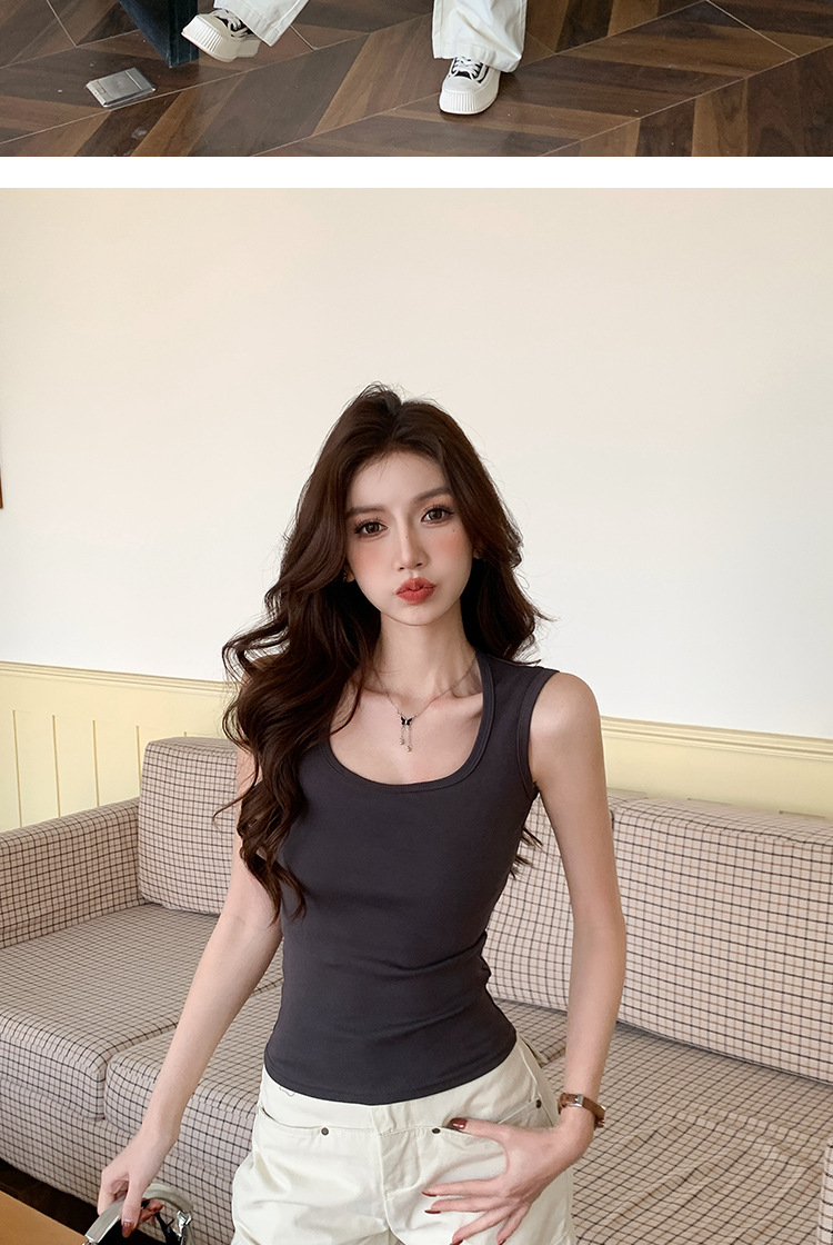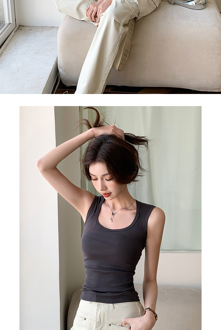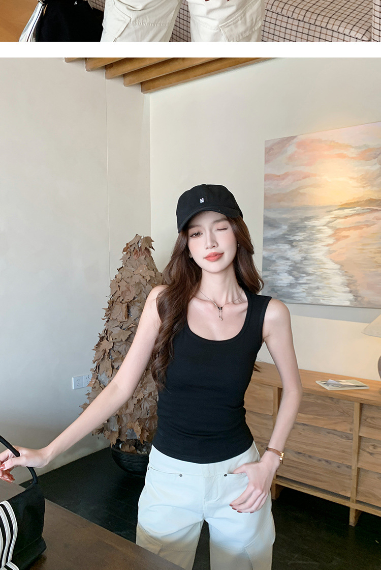H349 여름 여성의 U-넥 슬링 유행 민소매 조끼 민소매 조끼 유방 커버 슬림 핏 심플 올 매치 텍스처 퓨어 코튼 티셔츠스토어 가기
