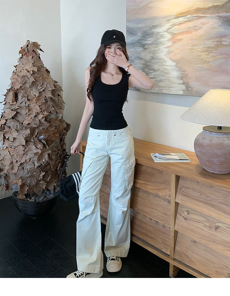 H349 여름 여성의 U-넥 슬링 유행 민소매 조끼 민소매 조끼 유방 커버 슬림 핏 심플 올 매치 텍스처 퓨어 코튼 티셔츠