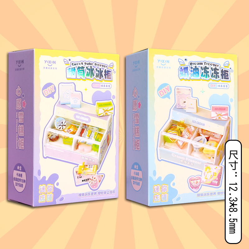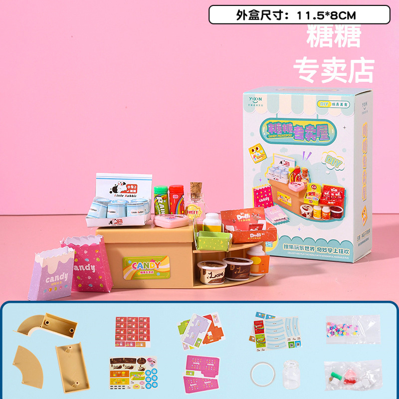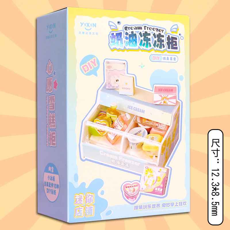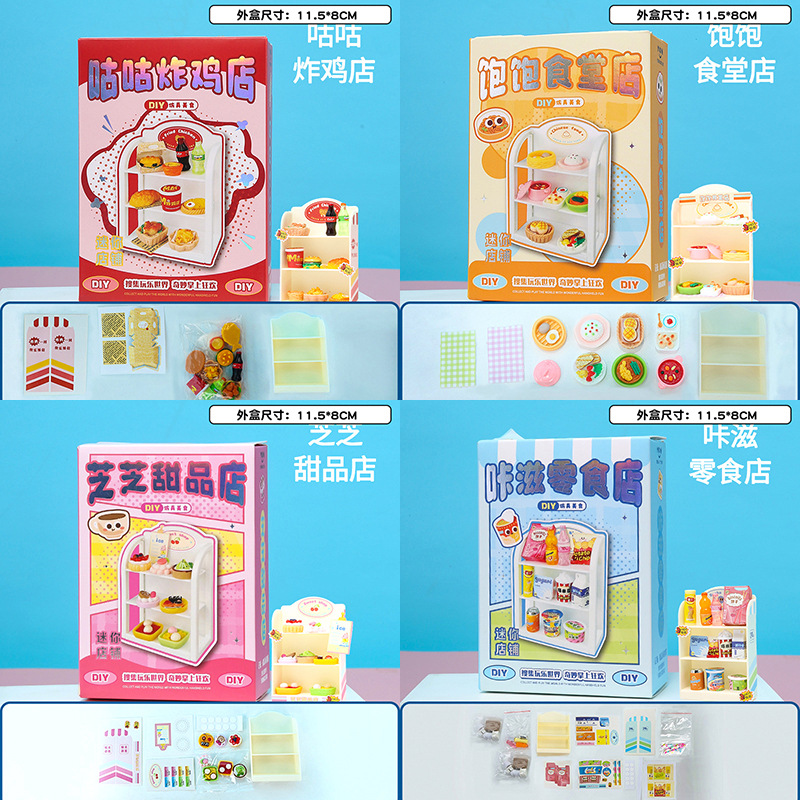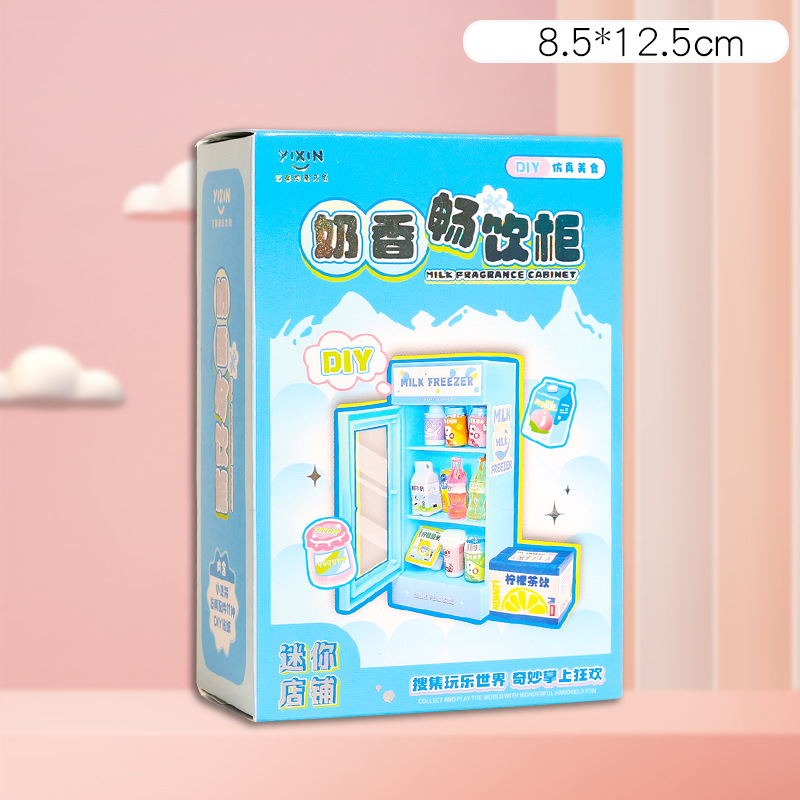 DIY 음식과 놀이 미니 냉장고 작은 케이크 미니어처 모델 장난감 장식품 슈퍼마켓 선반 미니 숍
