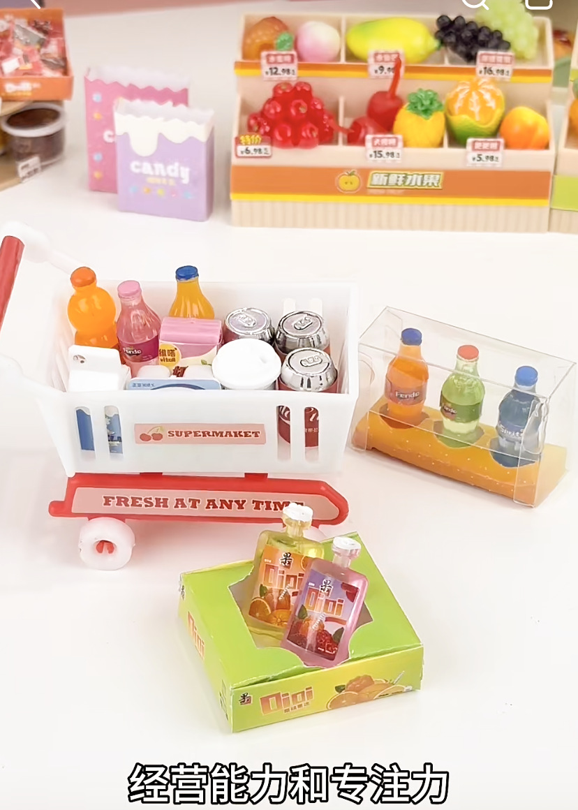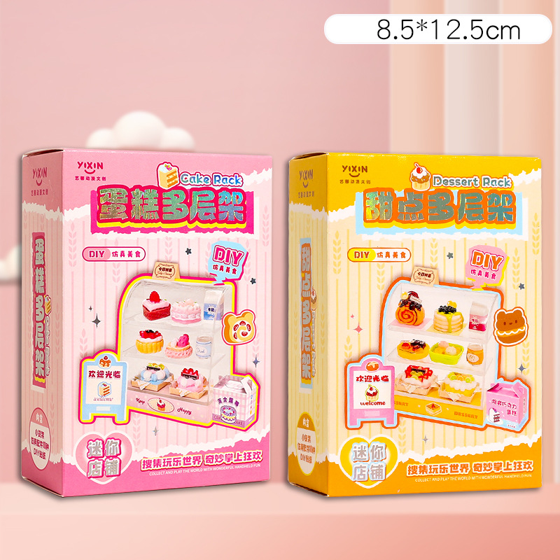 DIY 음식과 놀이 미니 냉장고 작은 케이크 미니어처 모델 장난감 장식품 슈퍼마켓 선반 미니 숍스토어 가기