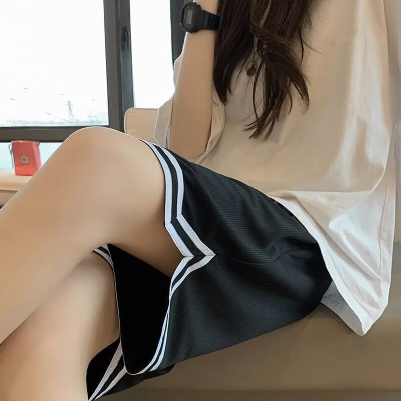 달리기 스포츠 반바지 여성 여름 Ins 유행 캐주얼 학생 높은 허리 느슨한 바지 블랙 와이드 다리 바지