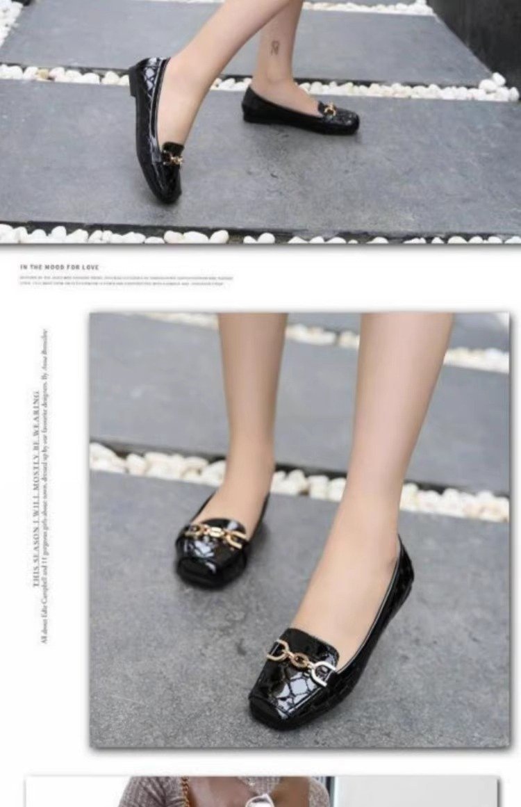 2025 Spring Shallow Moms 소프트 밑창 올매치 여성 가죽 신발 라운드 발가락 소프트 탑 편안한 통기성 샤이니 탑 싱글 레이어 신발 여성용