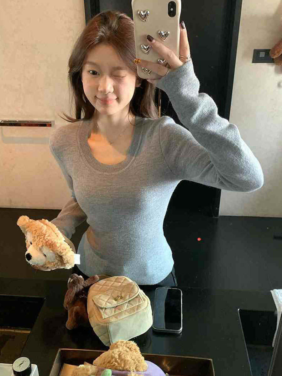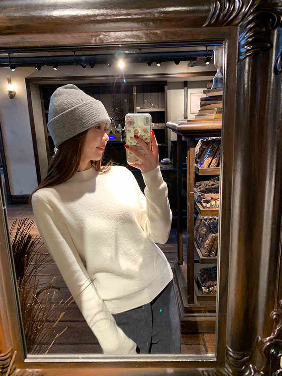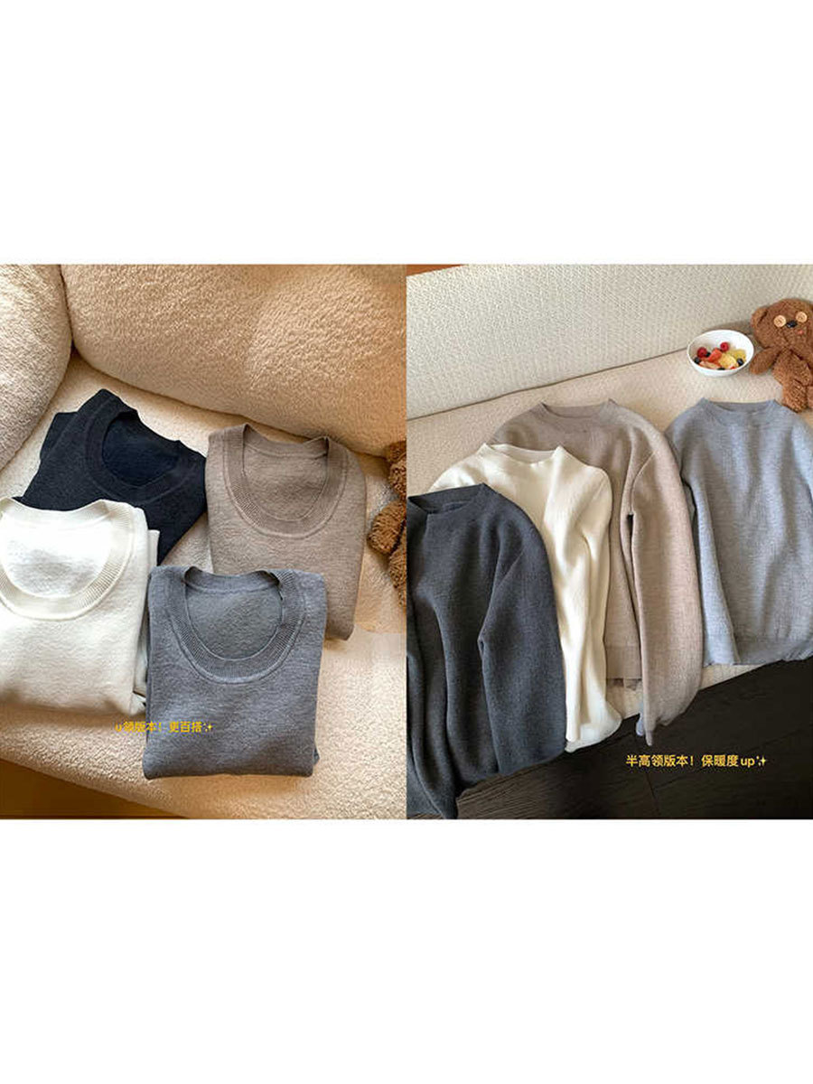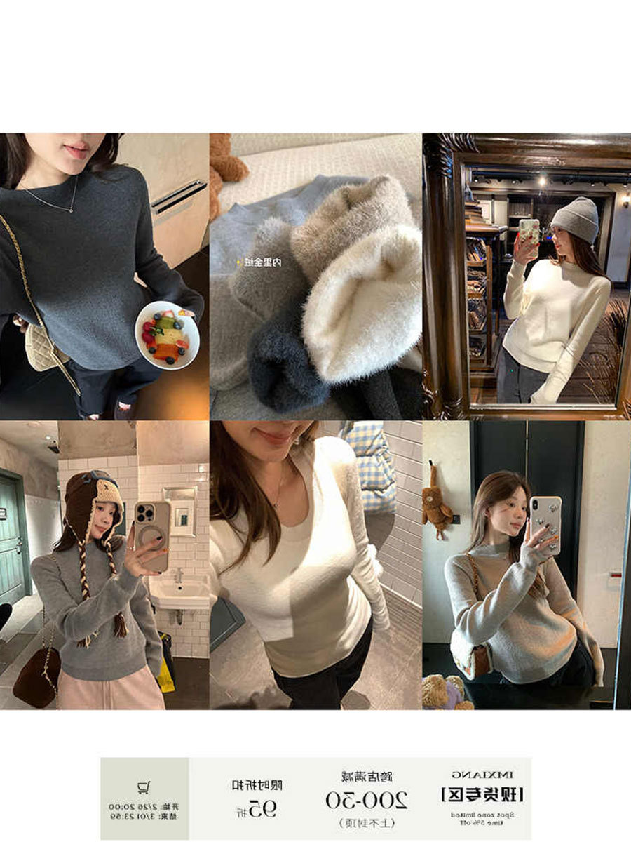 임 따뜻한 내부 뽕나무 실크 모조 울 밍크 벨벳 내부 니트 여성용 긴 소매베이스 셔츠스토어 가기