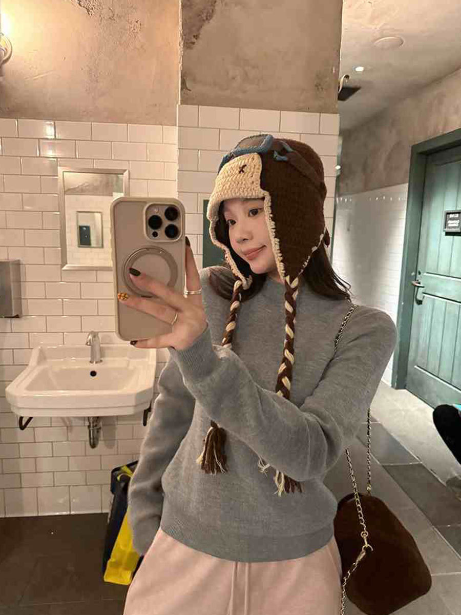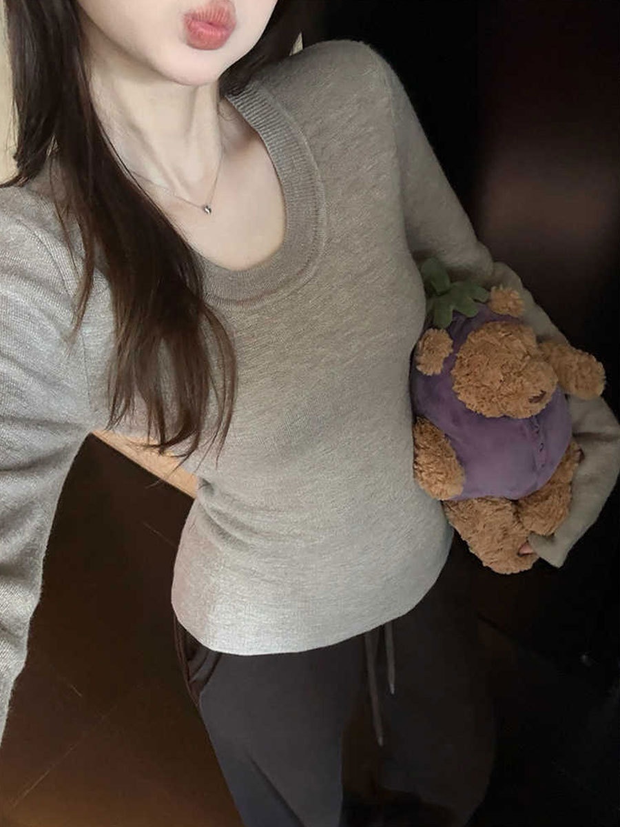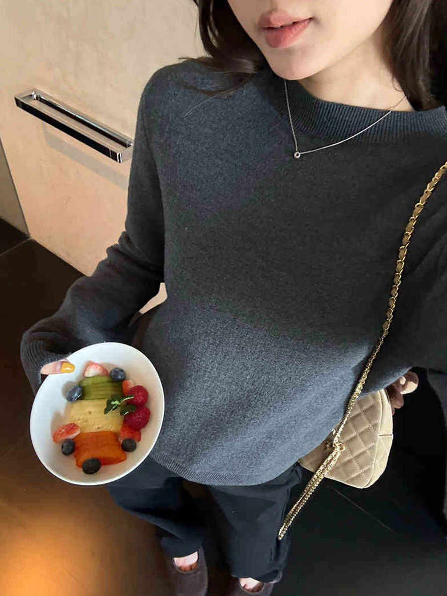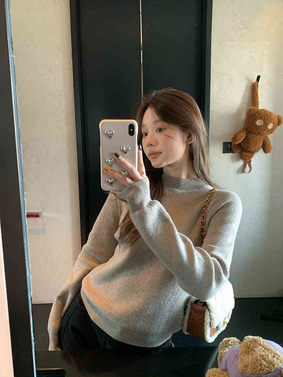 임 따뜻한 내부 뽕나무 실크 모조 울 밍크 벨벳 내부 니트 여성용 긴 소매베이스 셔츠