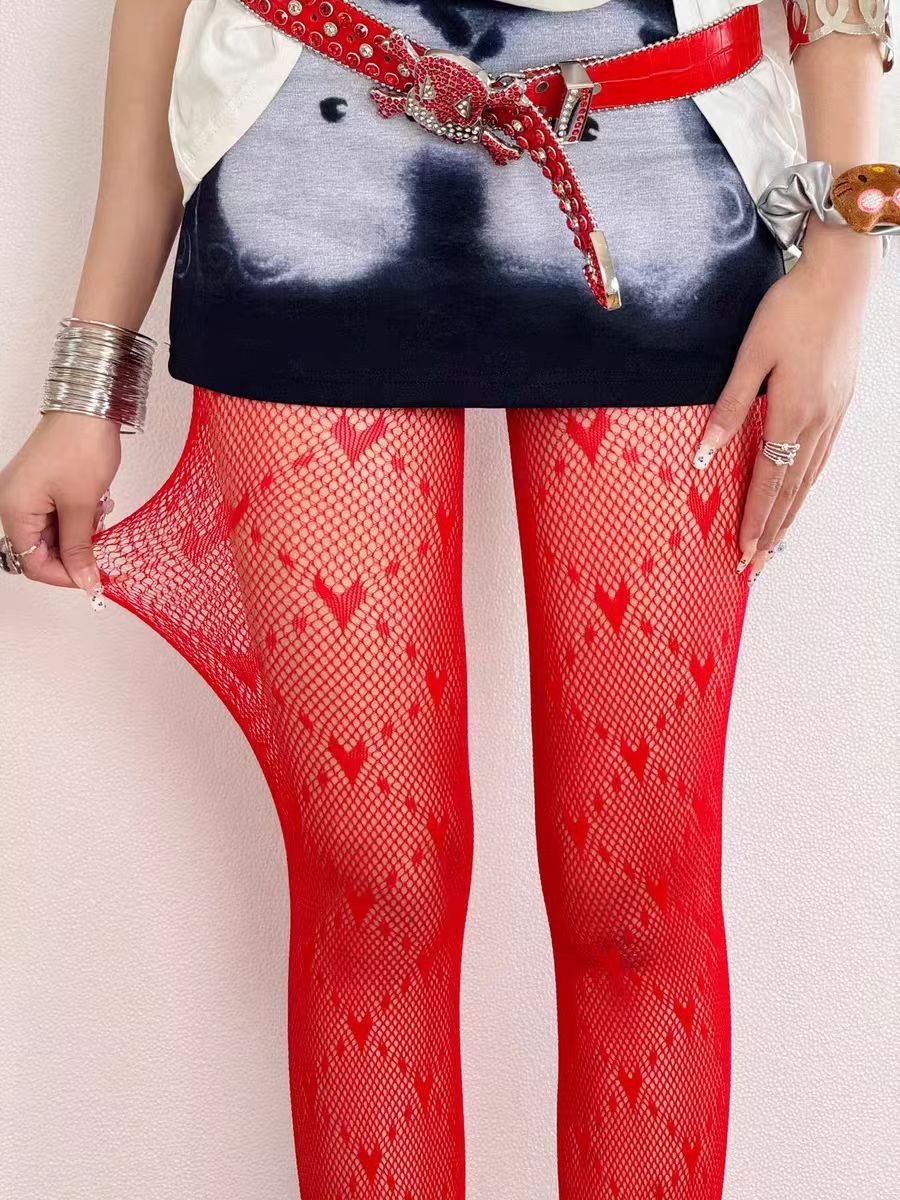 2024 국경 간 대외 무역 아마존 다이아몬드 사랑 체크 무늬 바지 fishnet 양말 여성 흑백 빨간색 섹시한 머리 세대스토어 가기