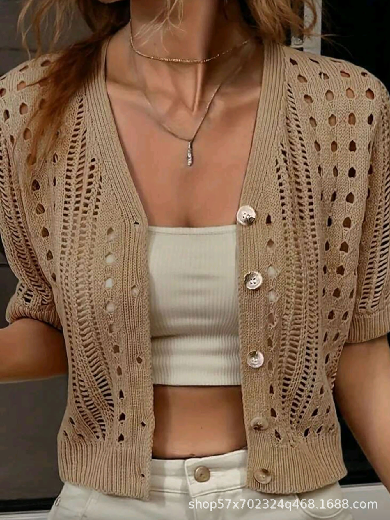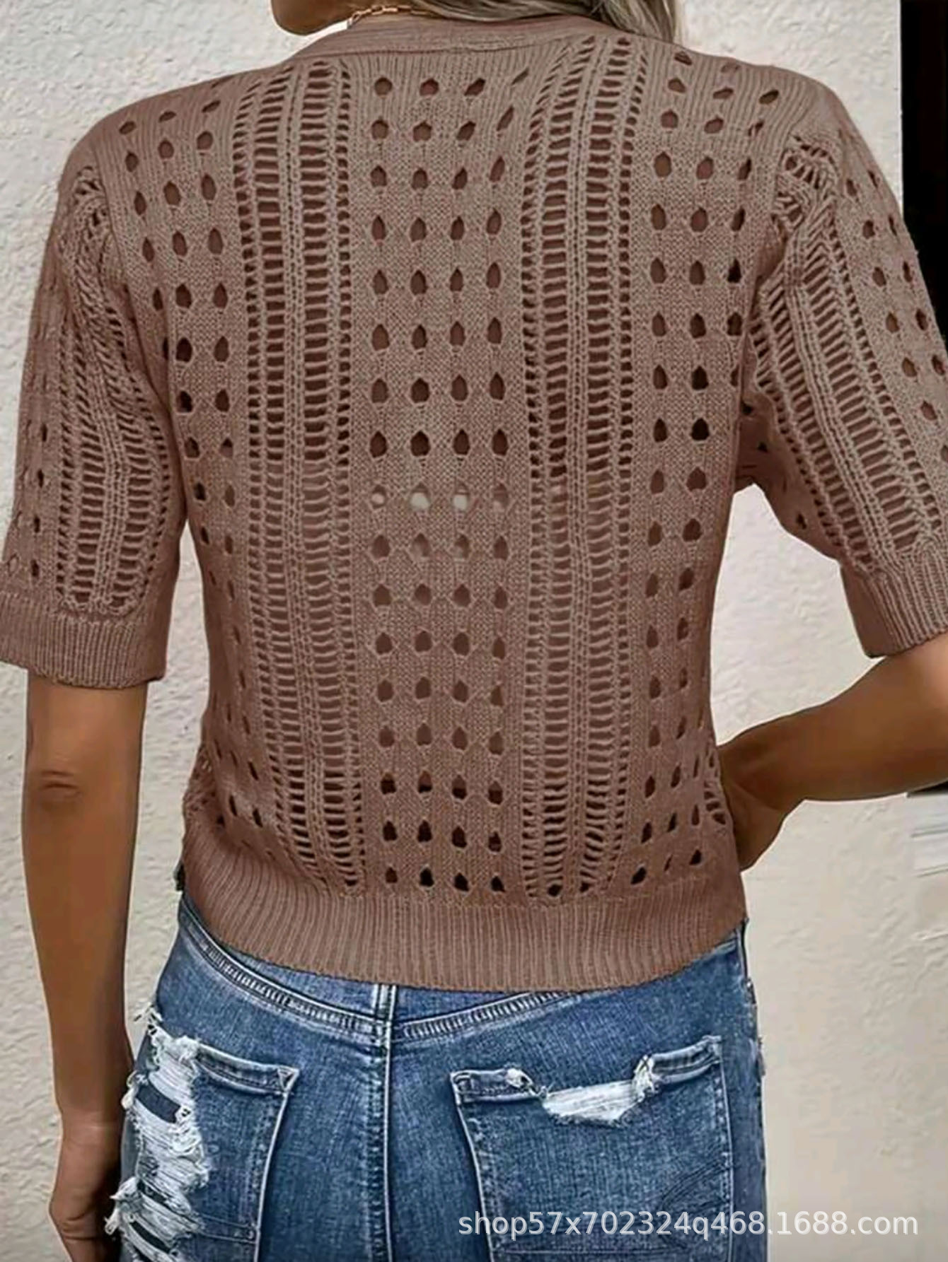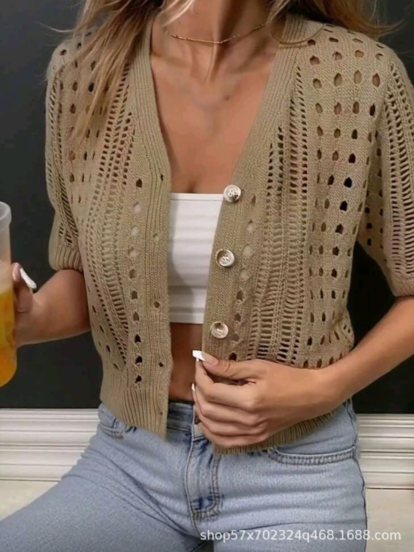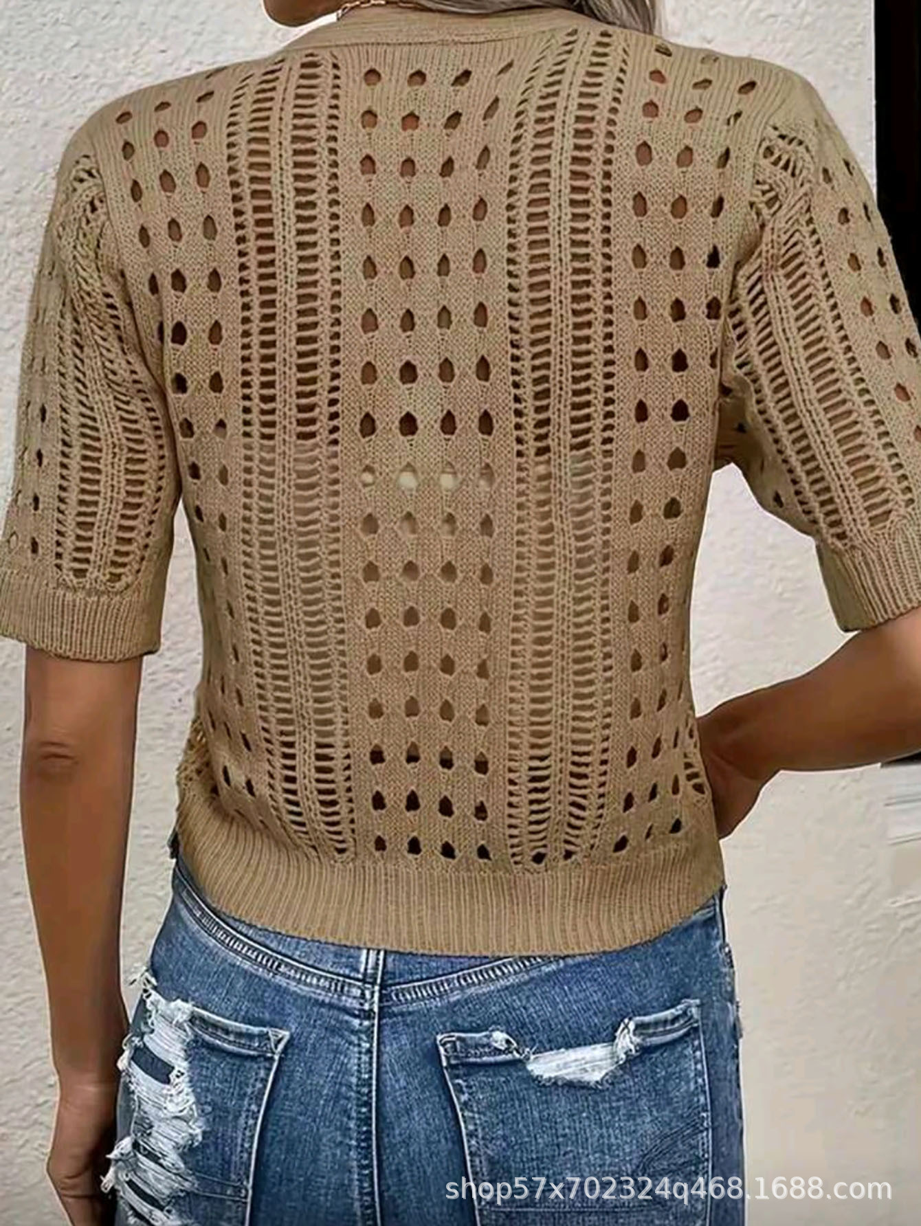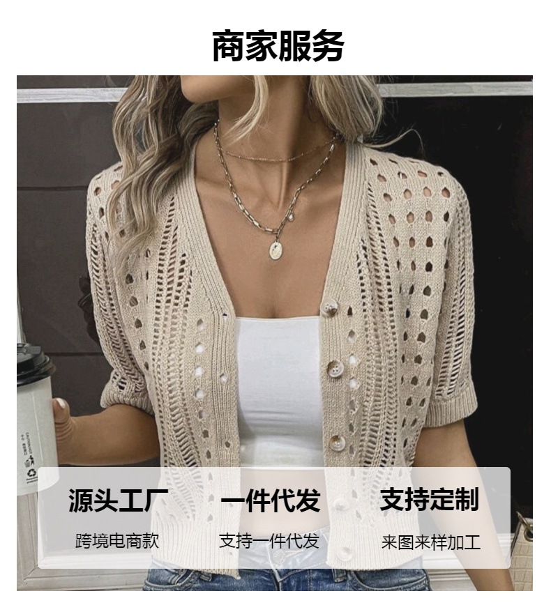 국경 간 니트 여성용 섹시한 할로우 카디건 새로운 재킷 유럽과 미국 아마존 짧은 여름스토어 가기