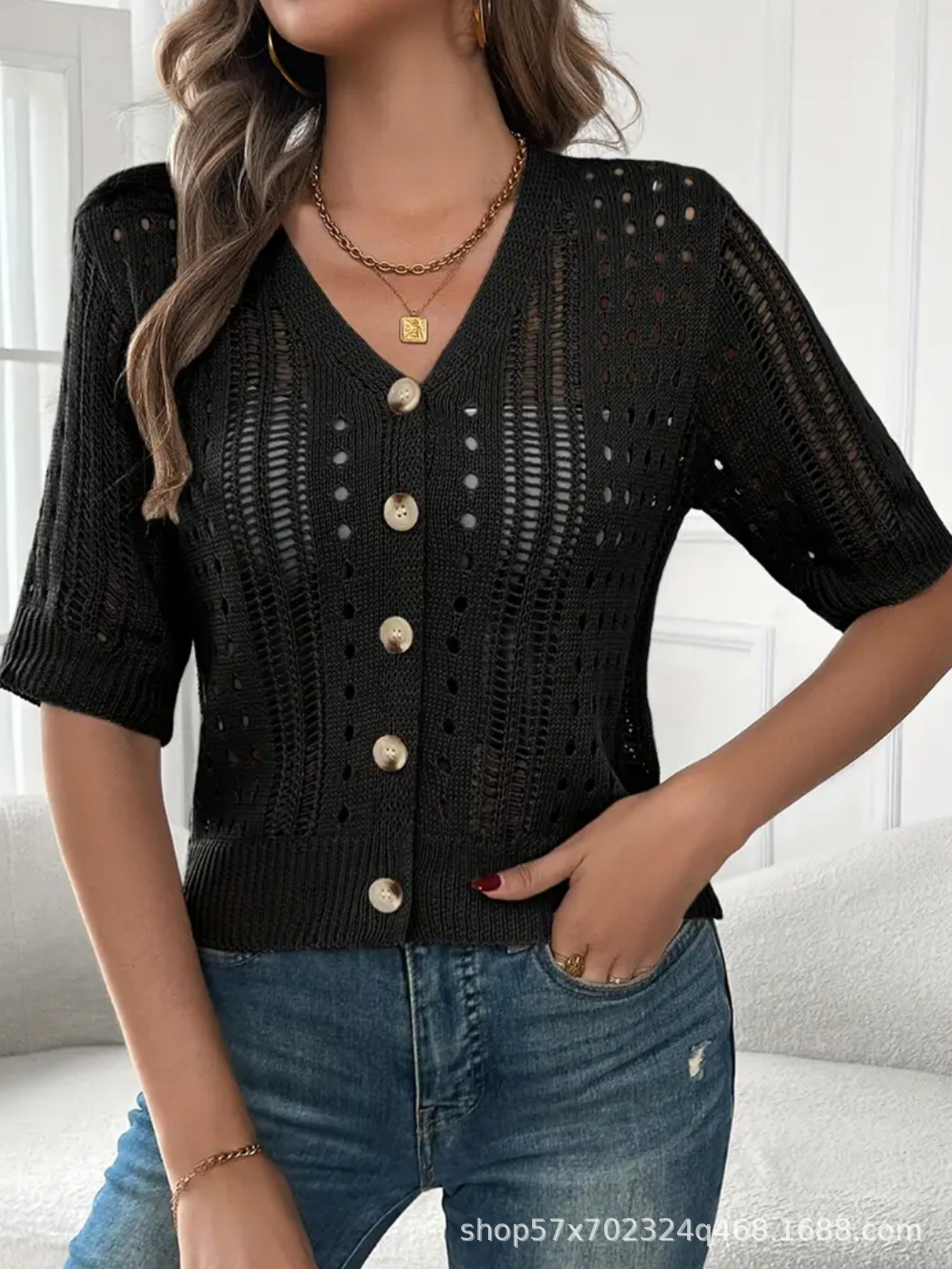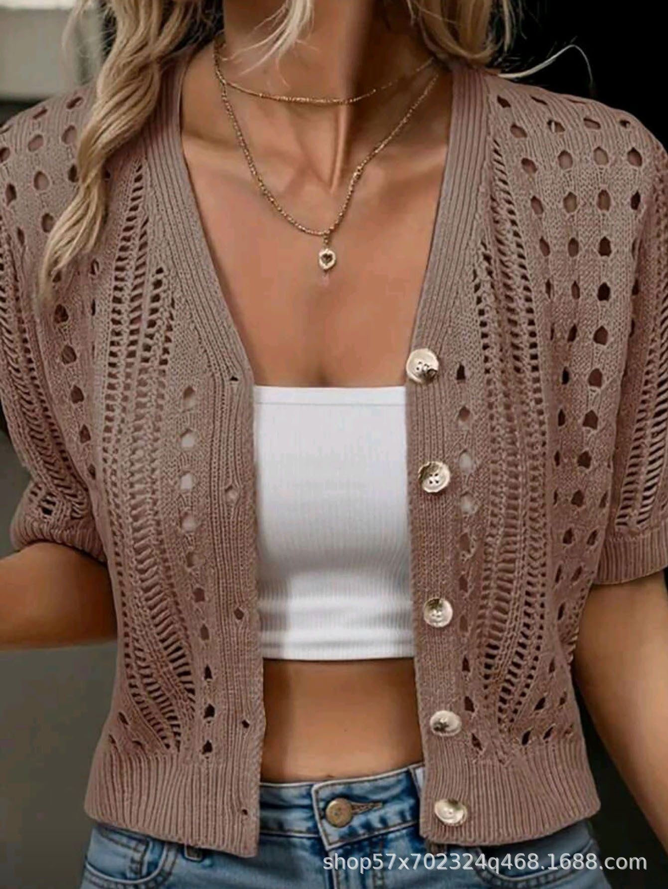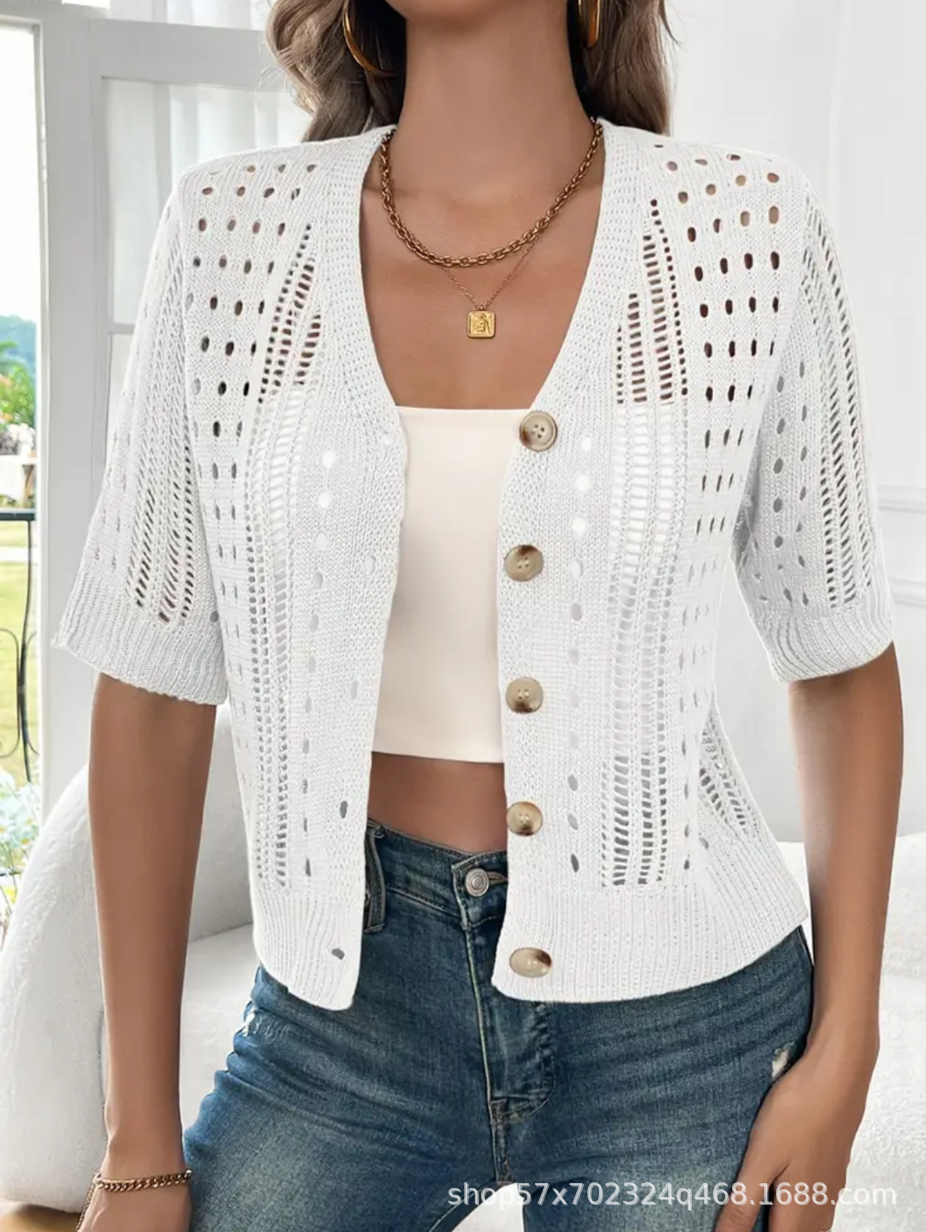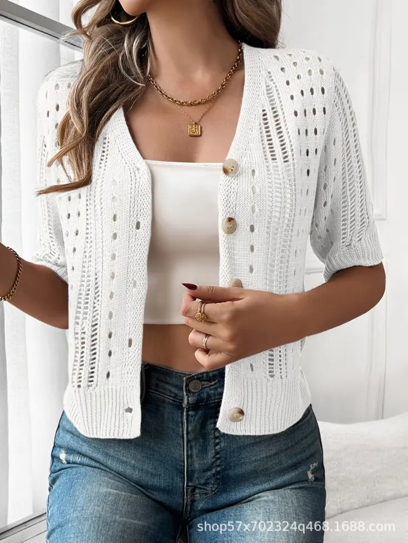 국경 간 니트 여성용 섹시한 할로우 카디건 새로운 재킷 유럽과 미국 아마존 짧은 여름스토어 가기
