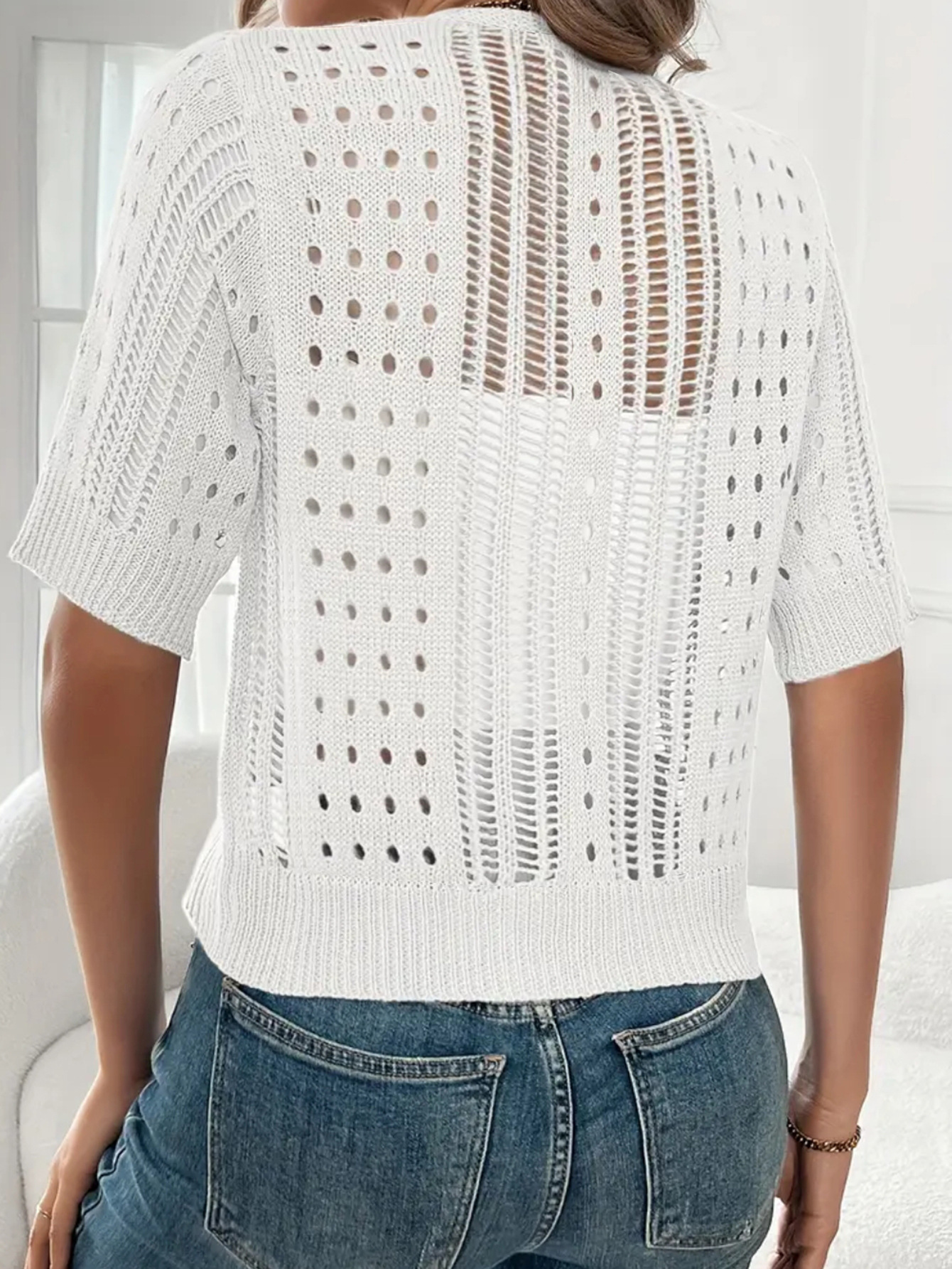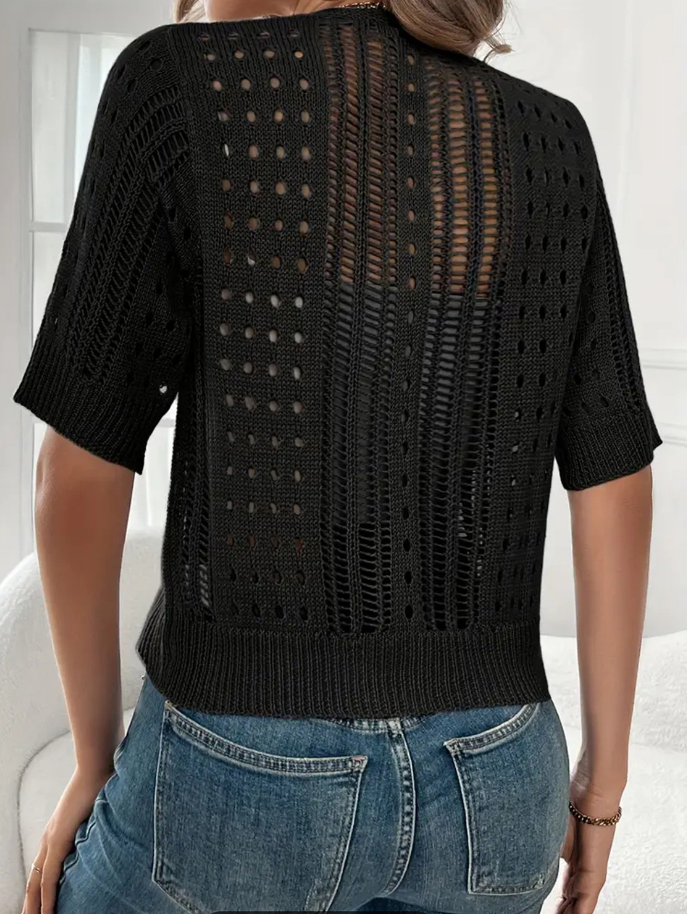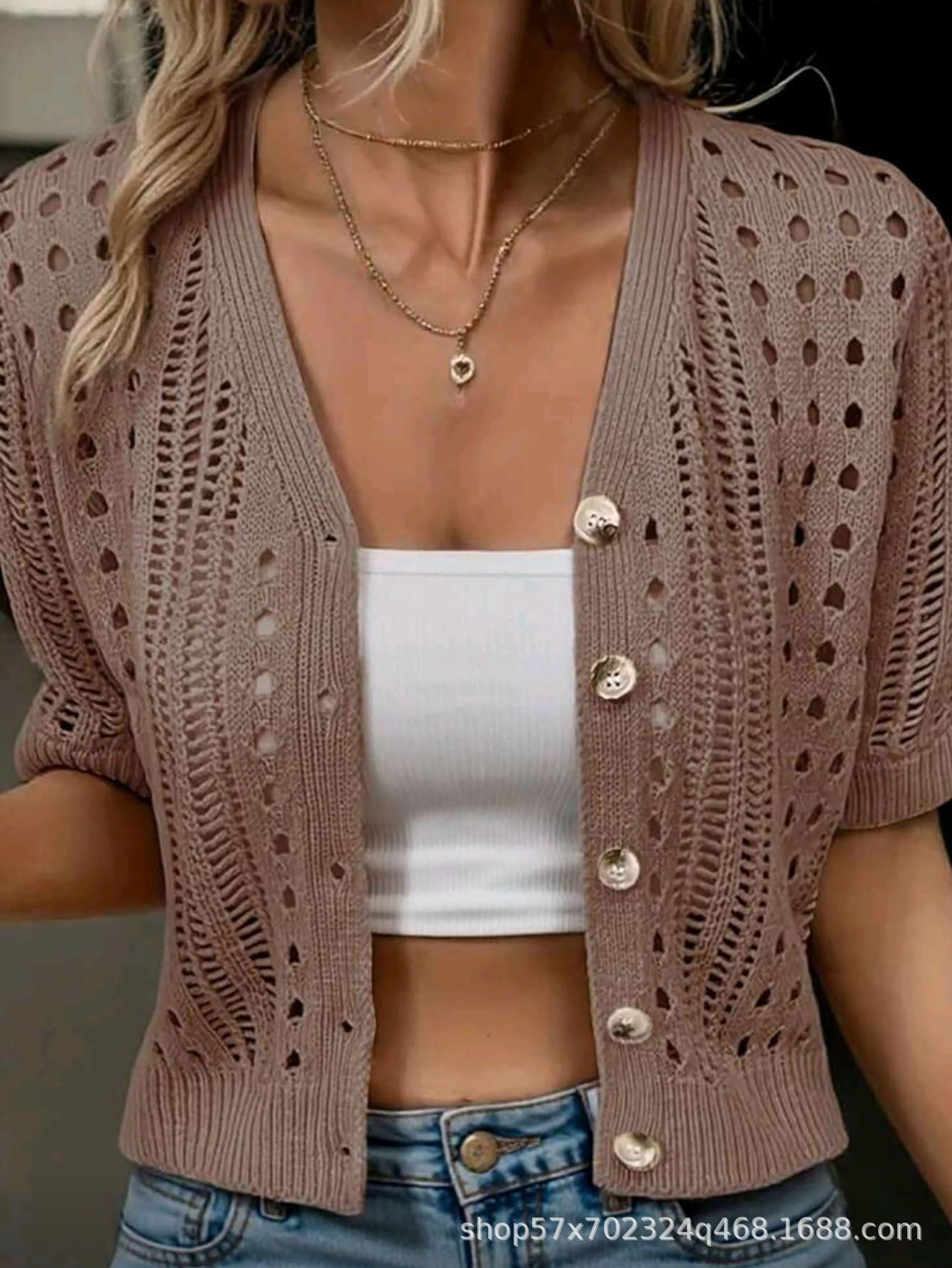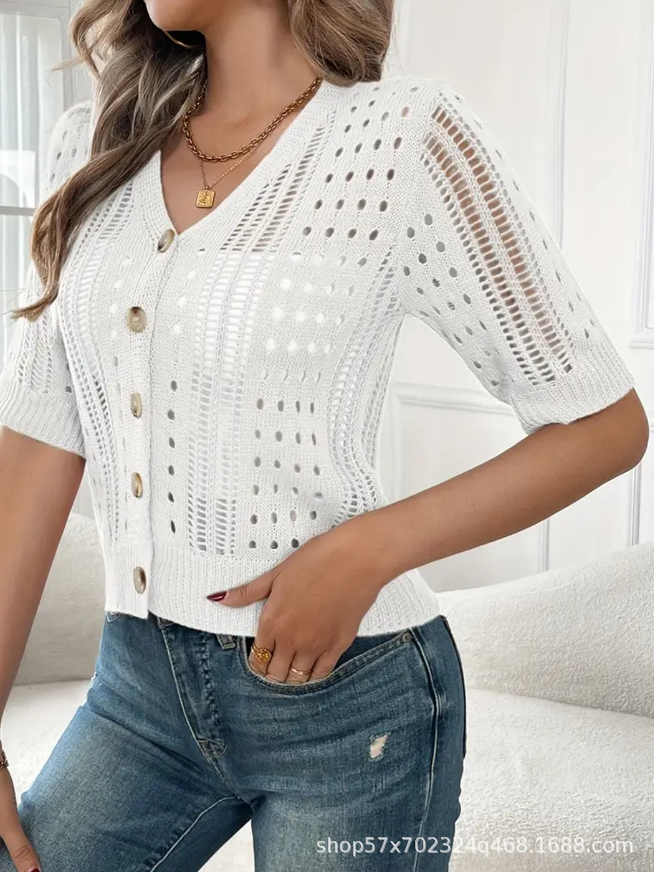 국경 간 니트 여성용 섹시한 할로우 카디건 새로운 재킷 유럽과 미국 아마존 짧은 여름스토어 가기
