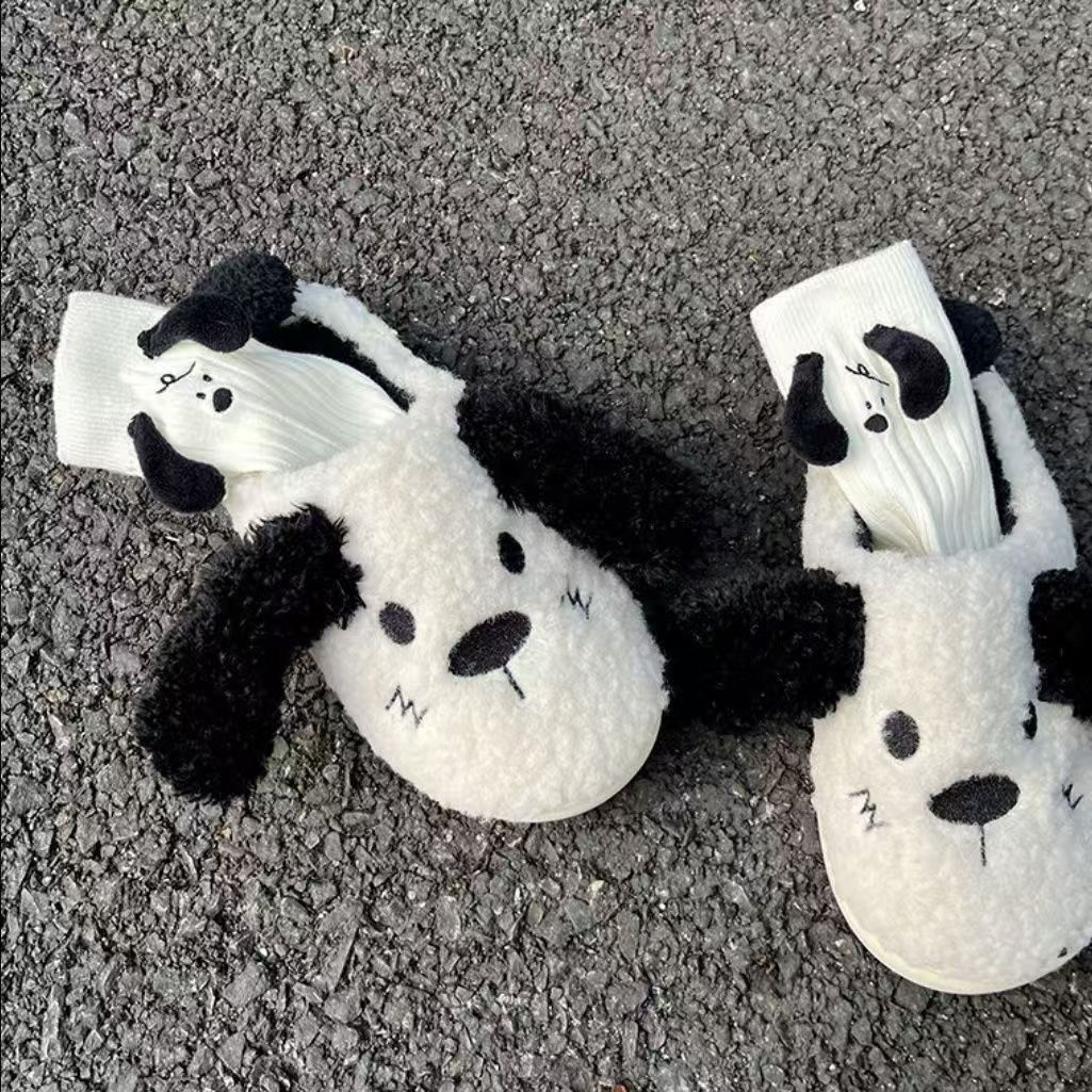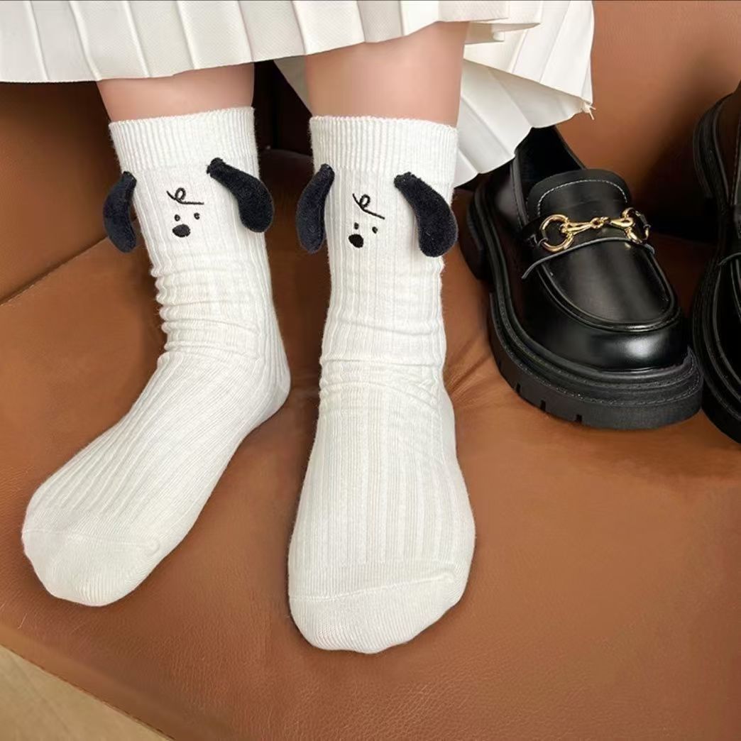 JK 소녀 Carto 양말 Ins 트렌디 한 올매치 틈새 3 차원 귀 흑백 강아지 코튼 양말 여성용 짧은 양말